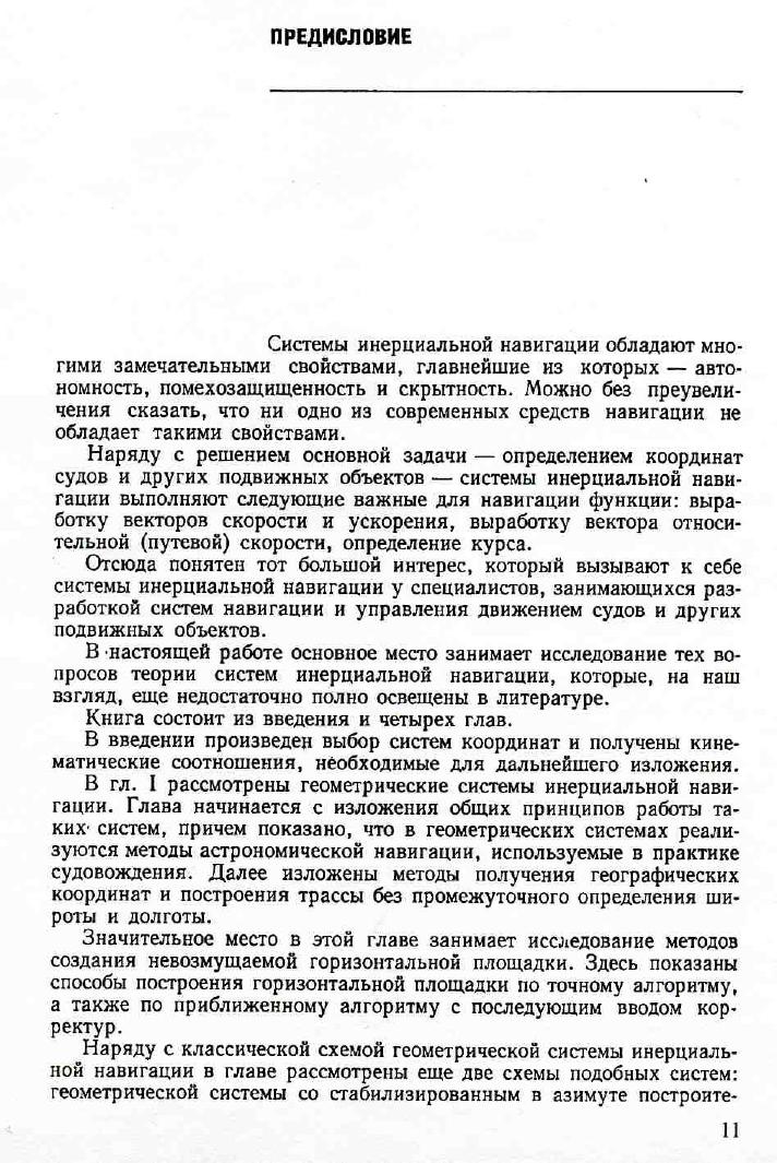 Рассмотрены геометрические, аналитические и полуаналитические системы инерциальной навигации, используемые, в частности, в судостроительной промышленности. Представлены алгоритмы преобразования информации акселерометров и даны структурные схемы этих преобразований, позволяющие вычислять параметры движения судов. Описаны методы построения горизонтальных плоскостей, инвариантных к ускорениям движущихся судов и способы демпфирования собственных колебаний систем инерциальной навигации. Проанализированы результаты исследований инструментальных погрешностей этих систем. Для инженеров, научных сотрудников, аспирантов и студентов соответствующих специальностей.