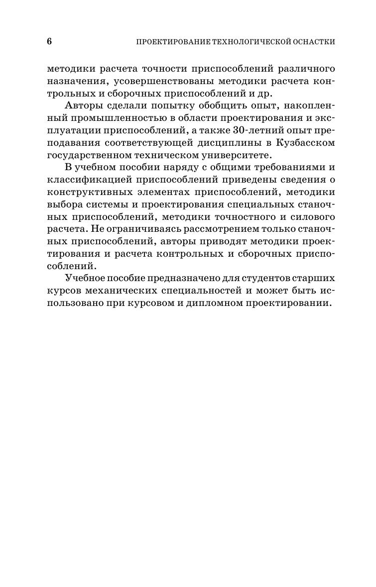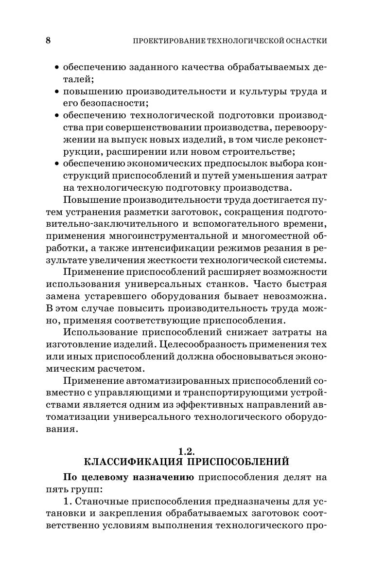 Дана классификация и изложена методика проектирования приспособлений. Особое внимание уделено системам технологической оснастки. Рассмотрены схемы установки заготовок, методики выбора и расчетов основных типов приспособлений. Приведены примеры типовых конструкций станочных приспособлений. Соответствует современным требованиям Федерального государственного образовательного стандарта среднего профессионального образования и профессиональным квалификационным требованиям. Учебное пособие предназначено для студентов машиностроительных специальностей колледжей.