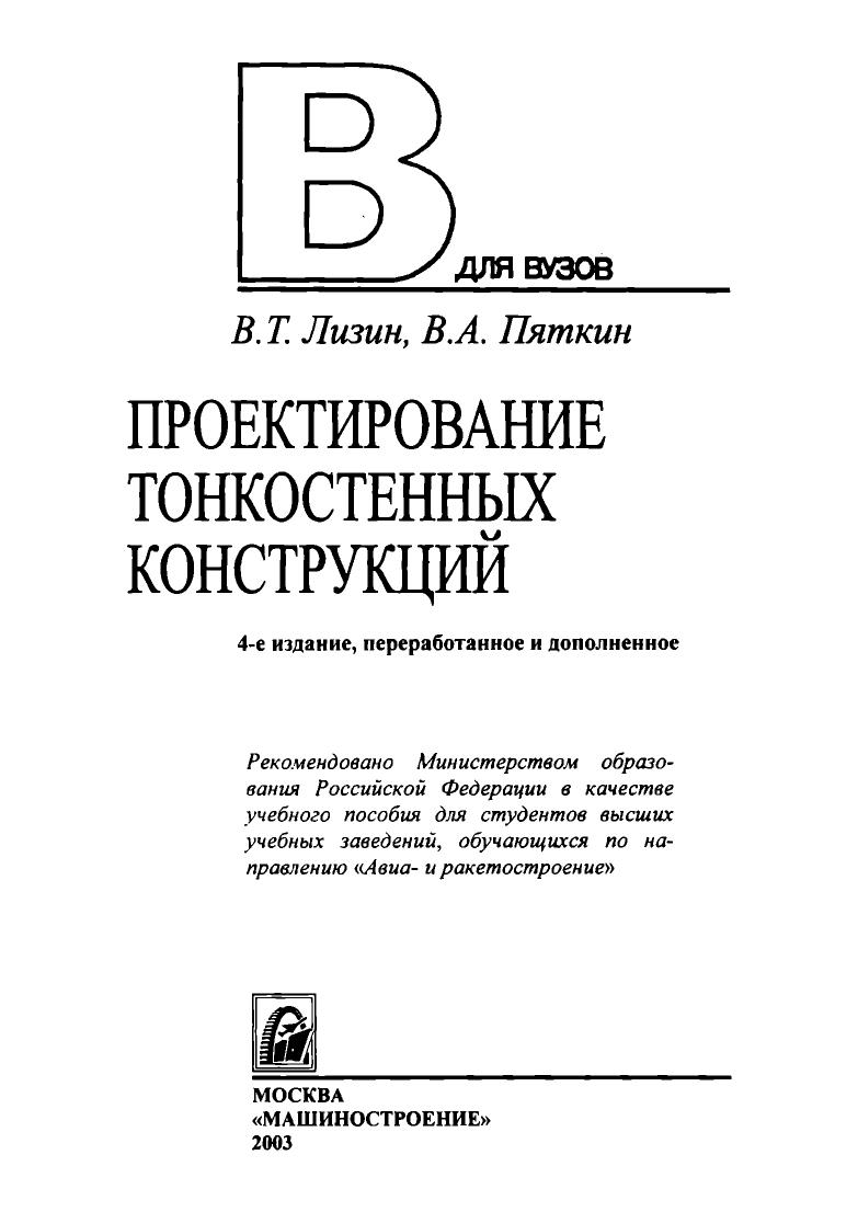 Гриф: Рекомендовано Министерством образования Российской Федерации в качестве учебного пособия для студентов высших учебных заведений, обучающихся по направлению «Авиа- и ракетостроение»