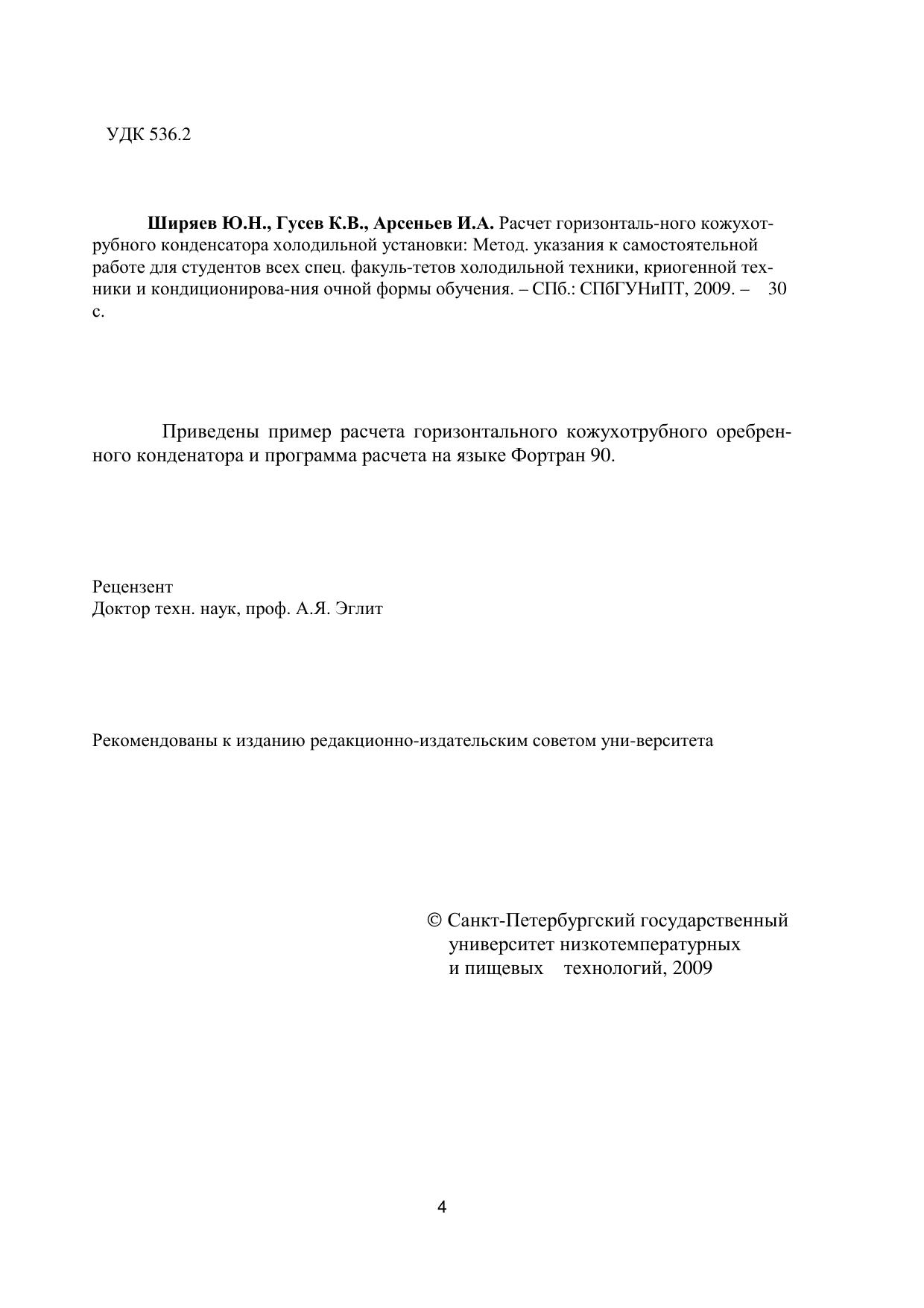 Расчет горизонтального кожухотрубного конденсатора холодильной установки: Метод. указания к самостоятельной работе для студентов всех спец. факультетов холодильной техники, криогенной техники и кондиционирова-ния очной формы обучения