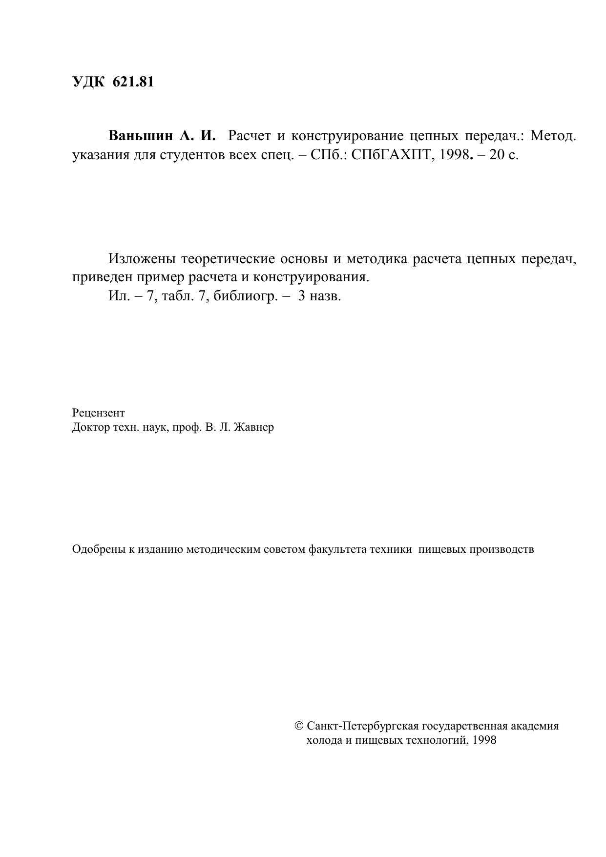 Изложены теоретические основы и методика расчета цепных передач, приведен пример расчета и конструирования.