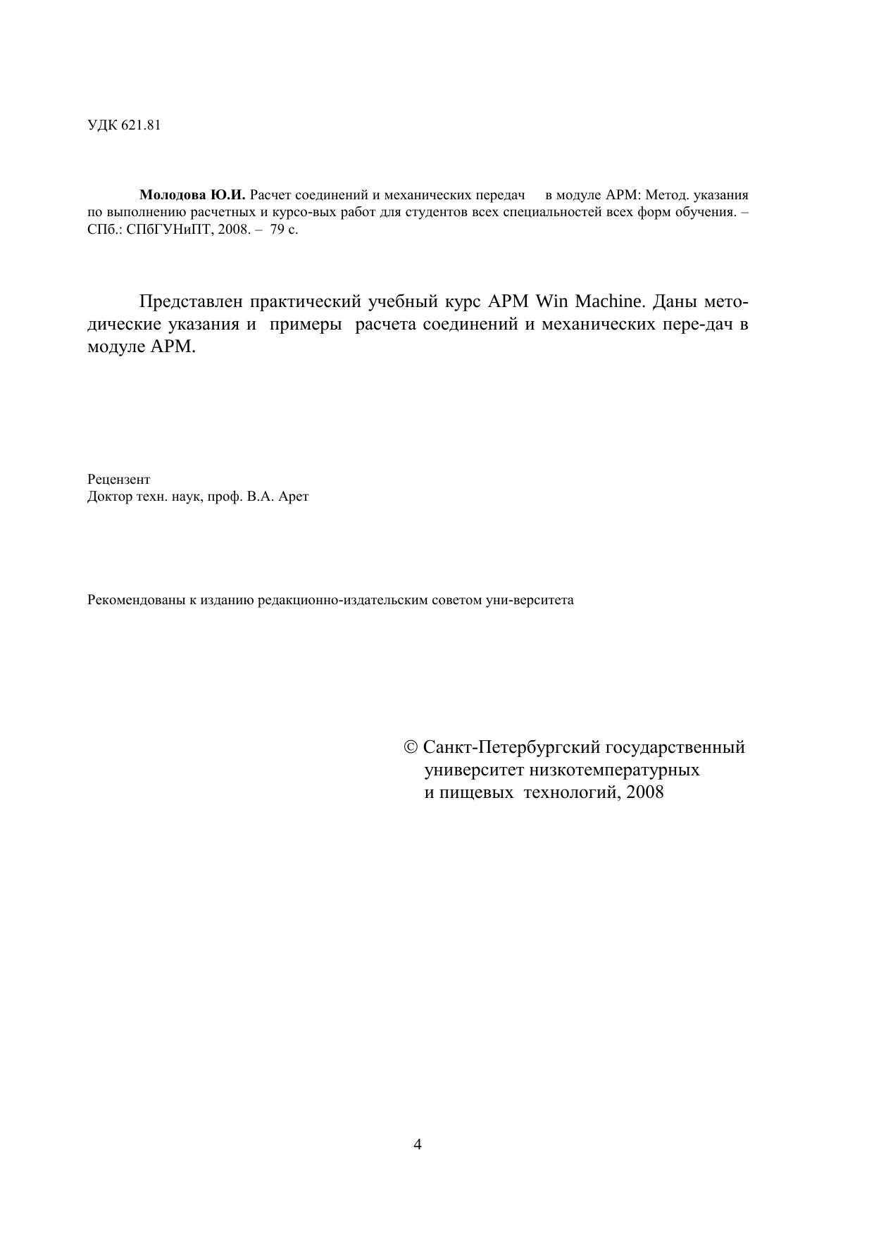 Представлен практический учебный курс АРМ Win Machine. Даны методические указания и примеры расчета соединений и механических передач в модуле APM.