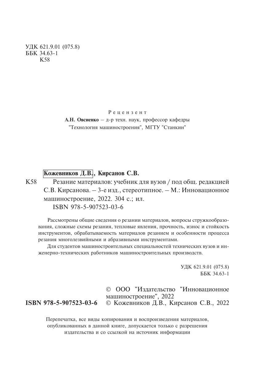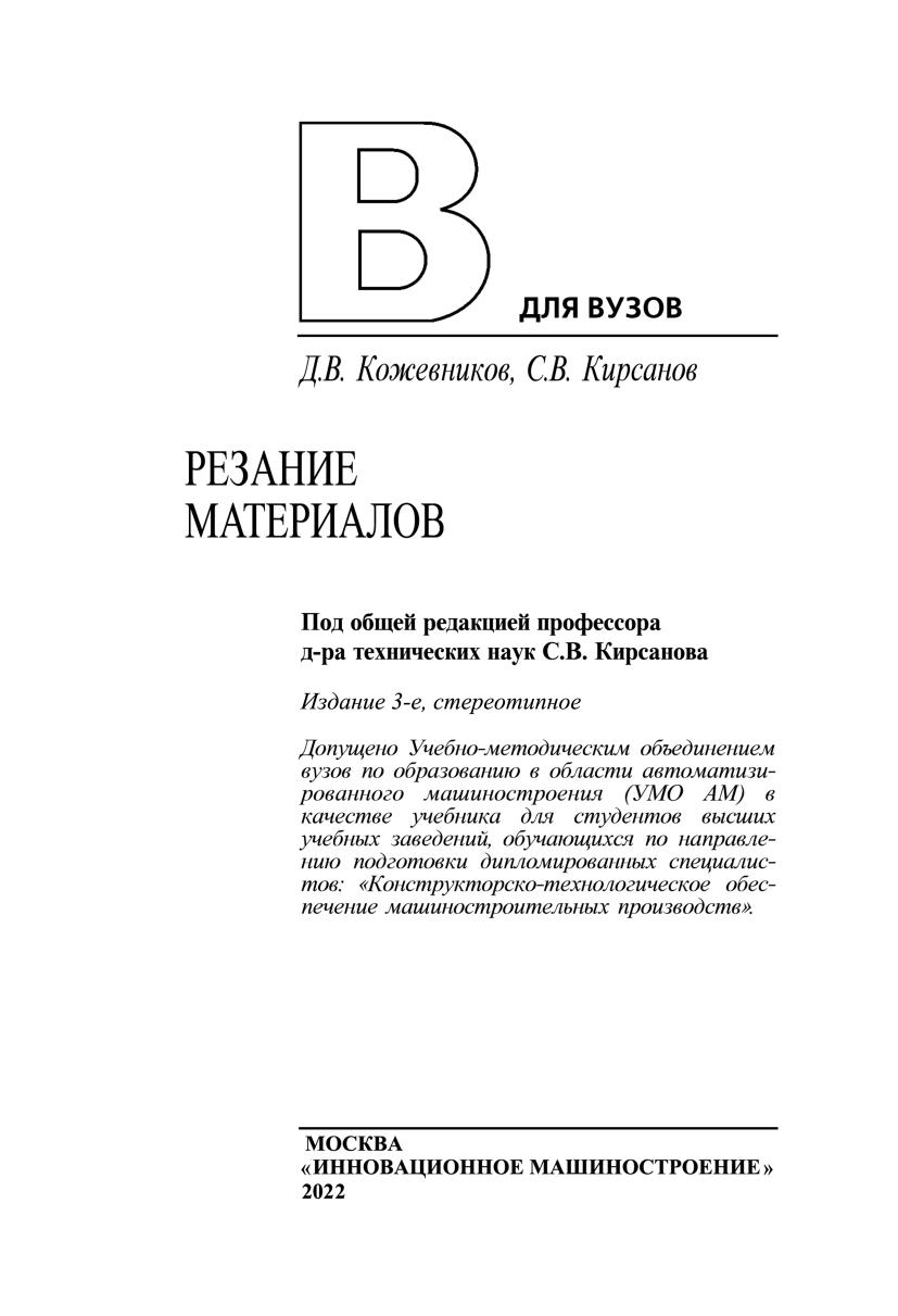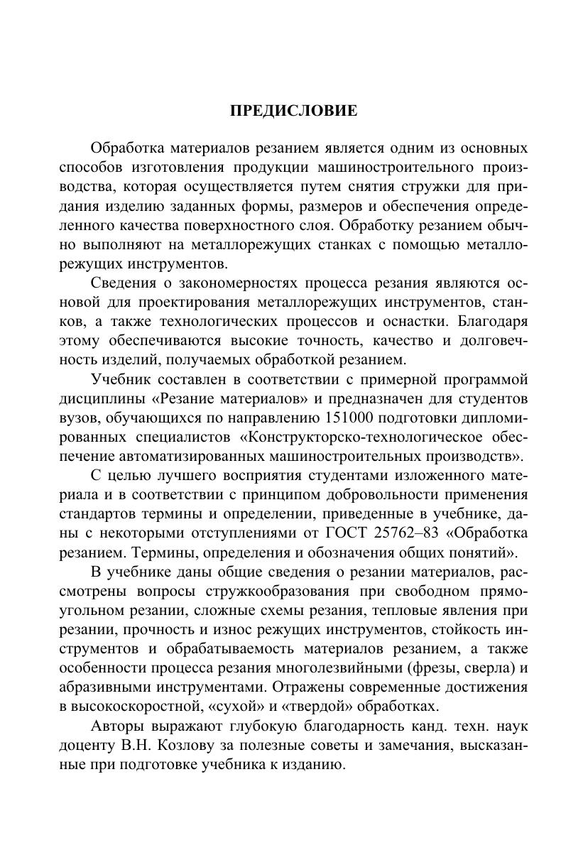 Рассмотрены общие сведения о резании материалов, вопросы стружкообразования, сложные схемы резания, тепловые явления, прочность, износ и стойкость инструментов, обрабатываемость материалов резанием и особенности процесса резания многолезвийными и абразивными инструментами.