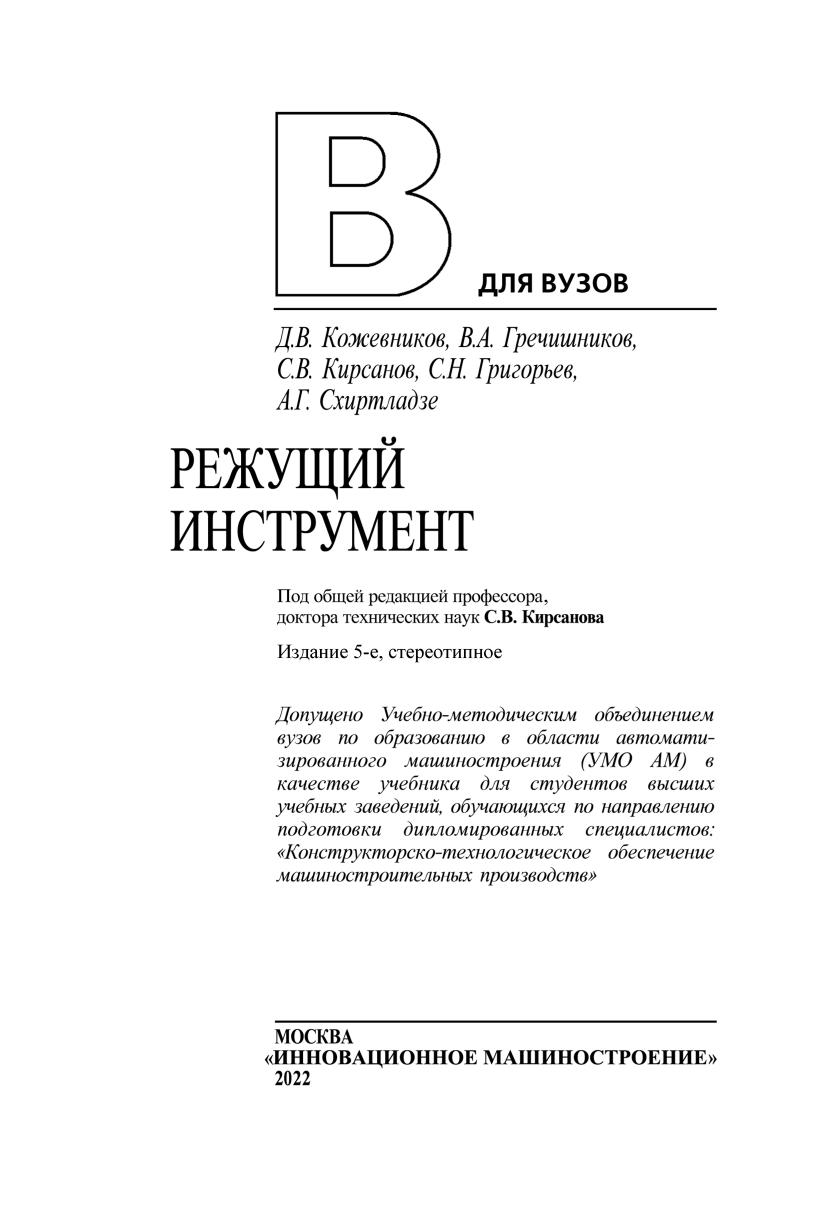 Авторы: Кожевников Д. В., Гречишников В. А., Кирсанов С. В., Григорьев С. Н., Свиртладзе А. Г.