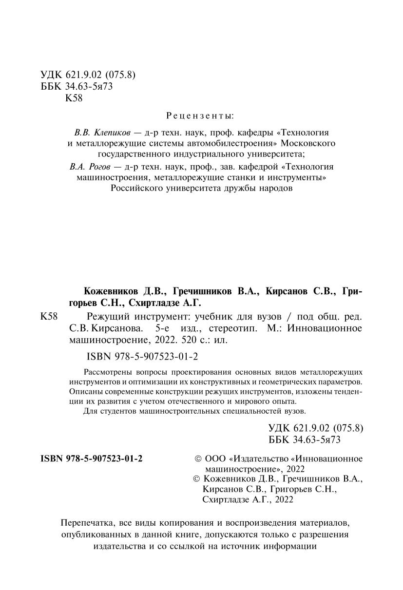 Рассмотрены вопросы проектирования основных видов металлорежущих инструментов и оптимизации их конструктивных и геометрических параметров. Описаны современные конструкции режущих инструментов, изложены тенденции их развития с учетом отечественного и мирового опыта.