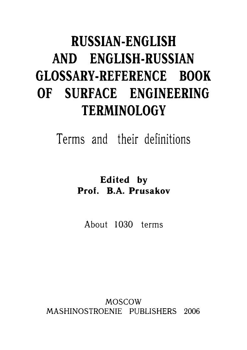 Русско-английский и англо-русский терминологический словарь-справочник по инженерии поверхности
