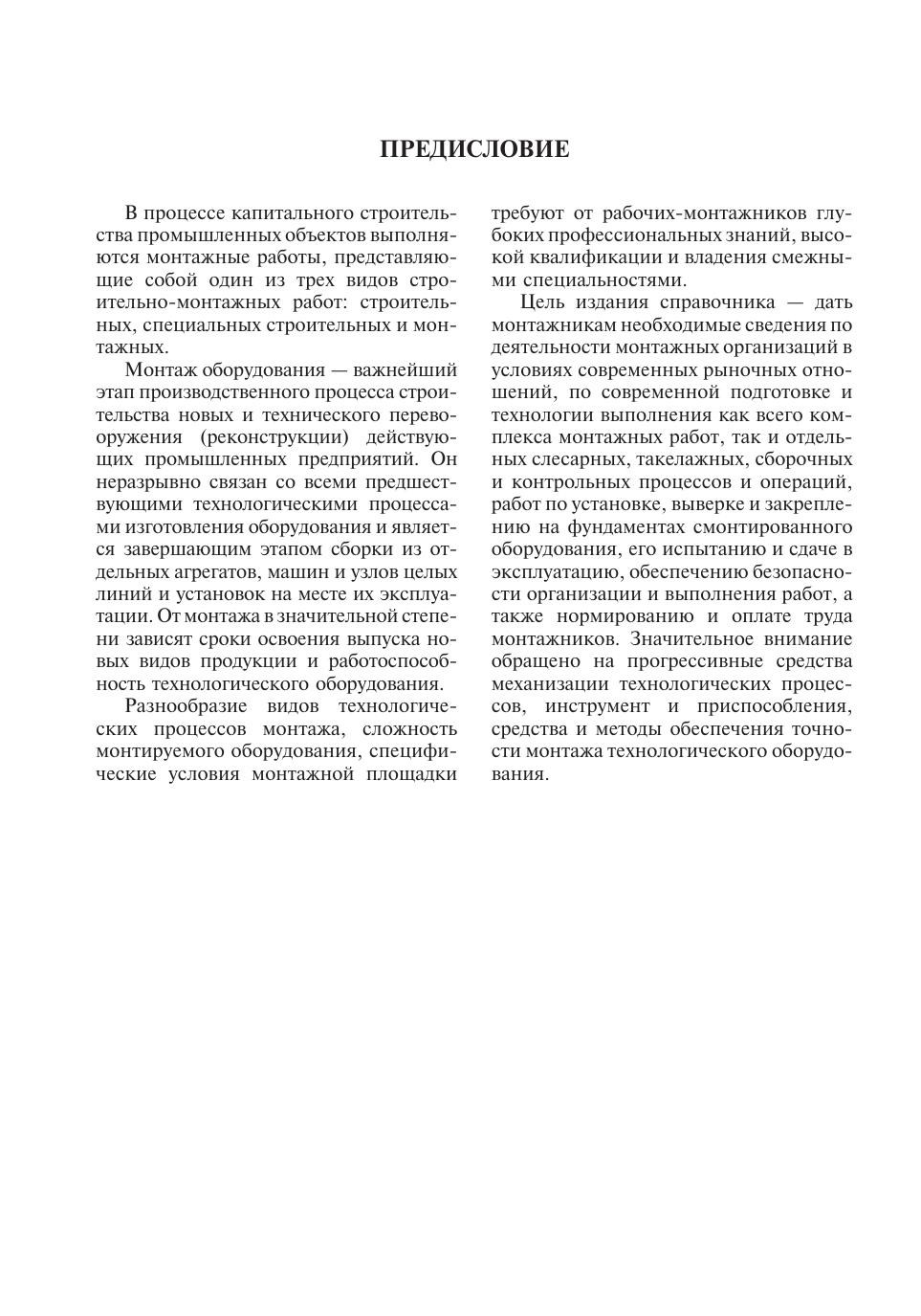 Изложены основы строительно-монтажного производства, система обеспечения безопасности при выполнении монтажных работ. Даны основы и практические рекомендации по эффективной деятельности монтажных предприятий и организаций в современных рыночных отношениях. Главное внимание обращено на вопросы технологической подготовки производства, методы осуществления основных монтажных работ, приемы выполнения слесарных, сборочных и вспомогательных работ и обеспечение их безопасного производства. Приведены сведения о составе и технологической структуре процессов и операций, выполняемых при монтаже оборудования промышленных предприятий. Представлены характеристики точности, технические характеристики инструмента, машин и приспособлений, используемых монтажниками. Рассмотрены вопросы испытания и ввода оборудования в эксплуатацию, а также организации оплаты труда в монтажных организациях. По сравнению со вторым изданием содержание справочника значительно видоизменено, а объем увеличен. Введены новые главы: «Основы строительно-монтажного производства», «Обеспечение безопасности при производстве строительно-монтажных работ», «Нормирование и оплата труда монтажников». Приведены новые виды инструментов и приспособлений и их характеристики. Дополнены отдельные главы и внесены изменения в технологию и процессы монтажа оборудования. Обновлена система стандартов и внесены соответствующие изменения в справочник. (Государственные стандарты даны по состоянию на 01.01.2008 г.) Справочник предназначен для слесарей-монтажников промышленного и технологического оборудования, рабочих смежных специальностей, учащихся специальных учебных заведений, техникумов и колледжей.
