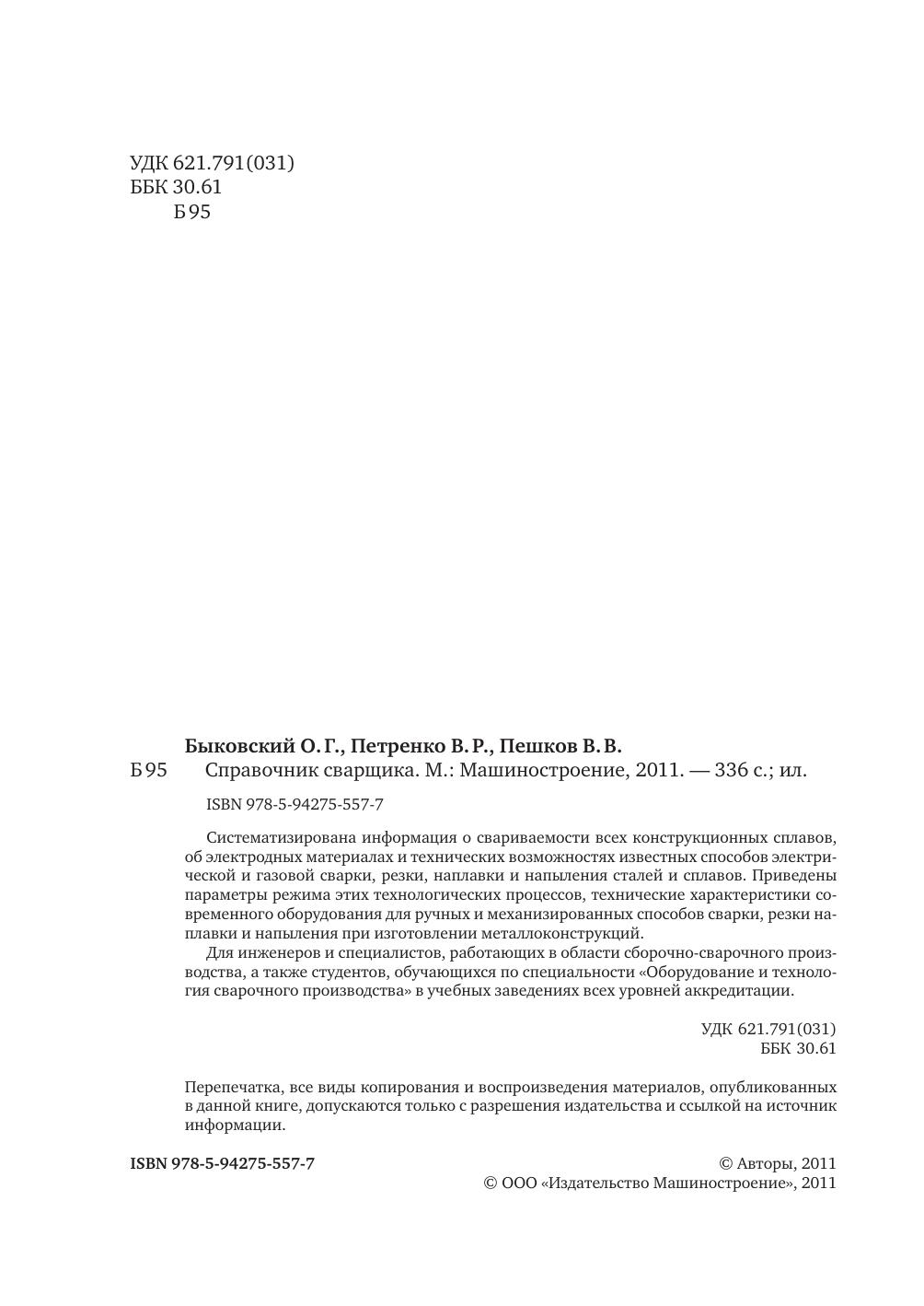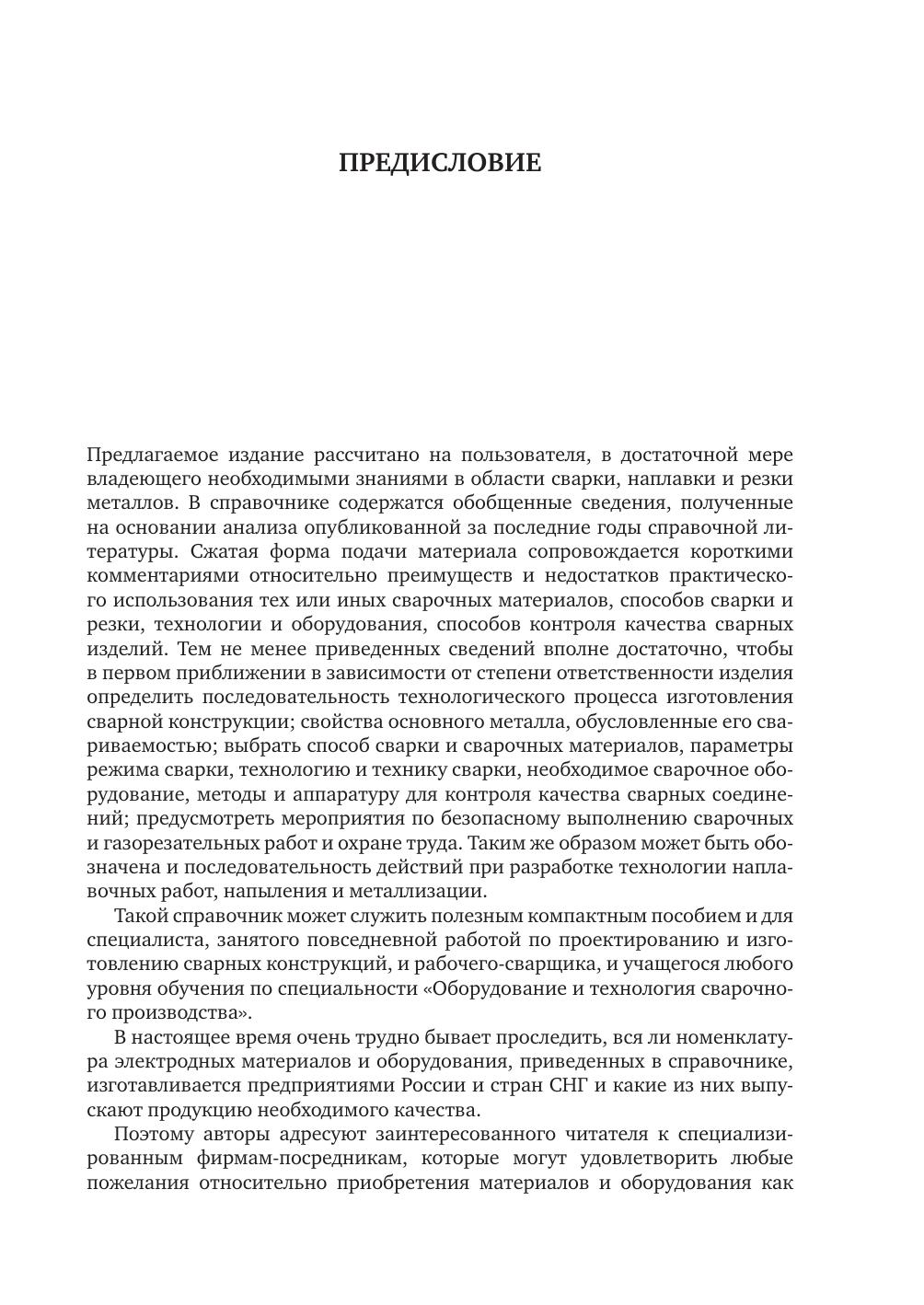 Систематизирована информация о свариваемости всех конструкционных сплавов, об электродных материалах и технических возможностях известных способов электрической и газовой сварки, резки, наплавки и напыления сталей и сплавов. Приведены параметры режима этих технологических процессов, технические характеристики современного оборудования для ручных и механизированных способов сварки, резки наплавки и напыления при изготовлении металлоконструкций. Для инженеров и специалистов, работающих в области сборочно-сварочного производства, а также студентов, обучающихся по специальности "Оборудование и технология сварочного производства" в учебных заведениях всех уровней аккредитации.