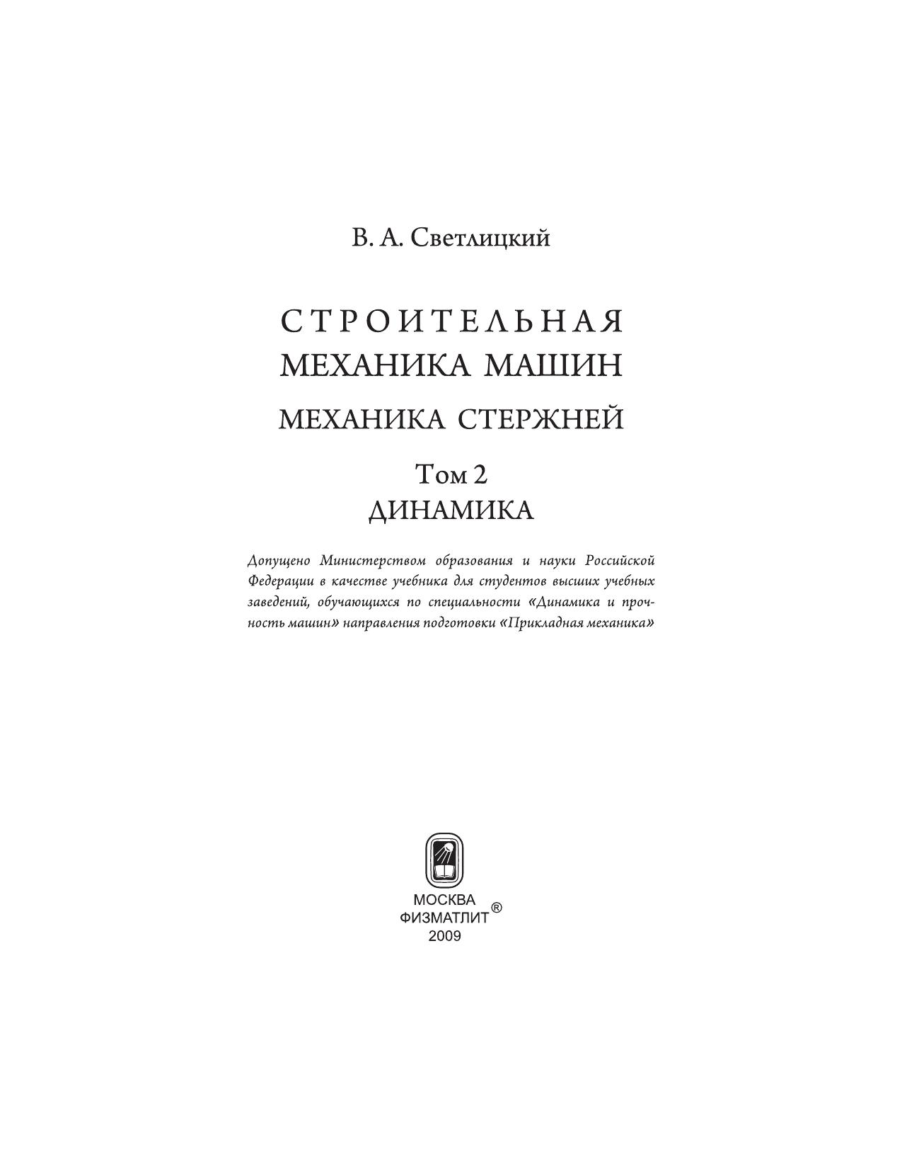 Гриф: Допущено Министерством образования и науки Российской Федерации в качестве учебника для студентов высших учебных заведений, обучающихся по специальности «Динамика и прочность машин» направления подготовки «Прикладная механика».