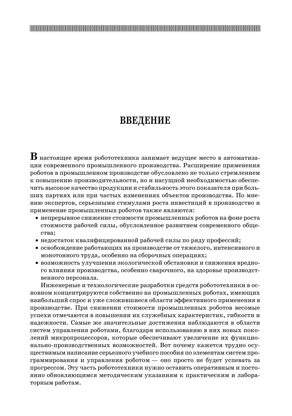В учебном пособии представлен мировой и отечественный опыт применения промышленных роботов в сварочном производстве. Изложены принципы построения роботизированных технологических систем и комплексов. Описано устройство наиболее применяемых в сварочном производстве роботов, даны их характеристики.