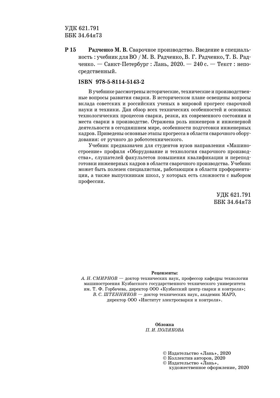 Учебник предназначен для студентов вузов направления «Машиностроение» профиля «Оборудование и технология сварочного производ-ства», слушателей факультетов повышения квалификации и переподготовки инженерных кадров в области сварочного производства. Учебник может быть полезен специалистам, работающим в области профориентации, а также выпускникам школ, у которых есть сложности с выбором профессии.