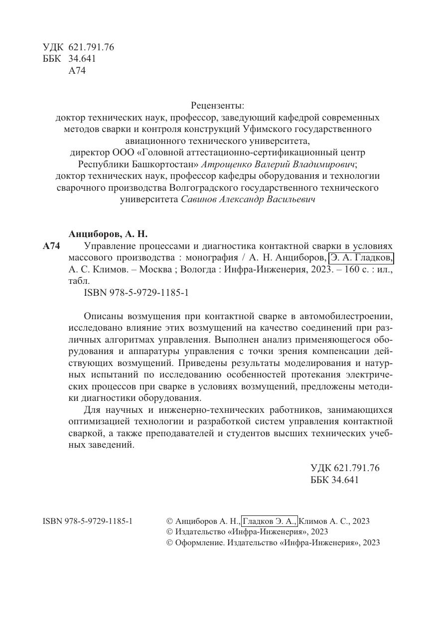 Для научных и инженерно-технических работников, занимающихся оптимизацией технологии и разработкой систем управления контактной сваркой, а также преподавателей и студентов высших технических учебных заведений.