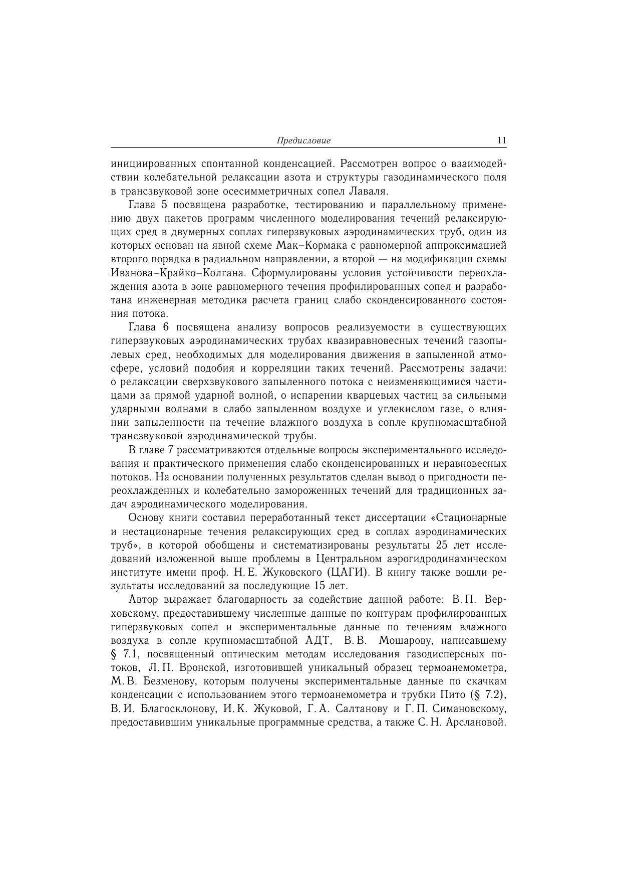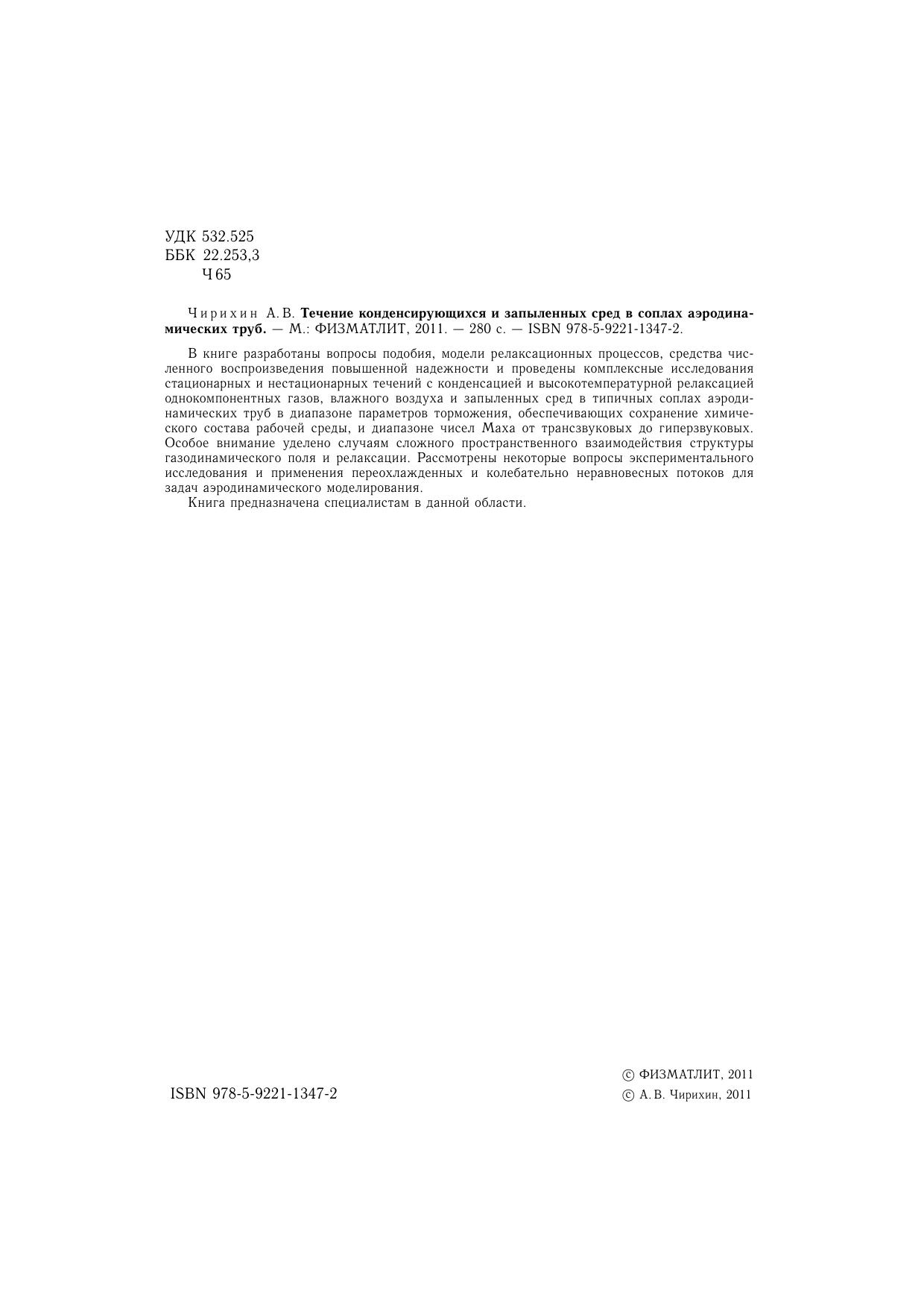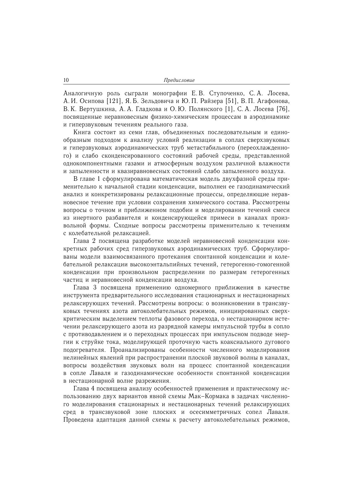 В книге разработаны вопросы подобия, модели релаксационных процессов, средства численного воспроизведения повышенной надежности и проведены комплексные исследования стационарных и нестационарных течений с конденсацией и высокотемпературной релаксацией однокомпонентных газов, влажного воздуха и запыленных сред в типичных соплах аэродинамических труб в диапазоне параметров торможения, обеспечивающих сохранение химического состава рабочей среды, и диапазоне чисел Маха от трансзвуковых до гиперзвуковых. Особое внимание уделено случаям сложного пространственного взаимодействия структуры газодинамического поля и релаксации. Рассмотрены некоторые вопросы экспериментальногоисследования и применения переохлажденных и колебательно неравновесных потоков для задач аэродинамического моделирования. Книга предназначена специалистам в данной области.