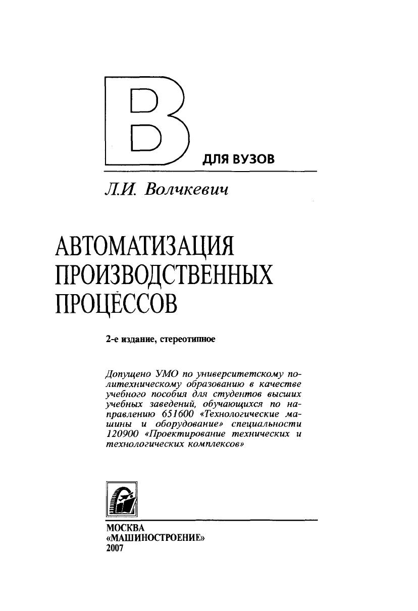 Гриф: Допущено УМО по университетскому политехническому образованию в качестве учебного пособия для студентов высших учебных заведений, обучающихся по направлению 651600 «Технологические машины и оборудование» специальности 120900 «Проектирование технических и технологических комплексов»