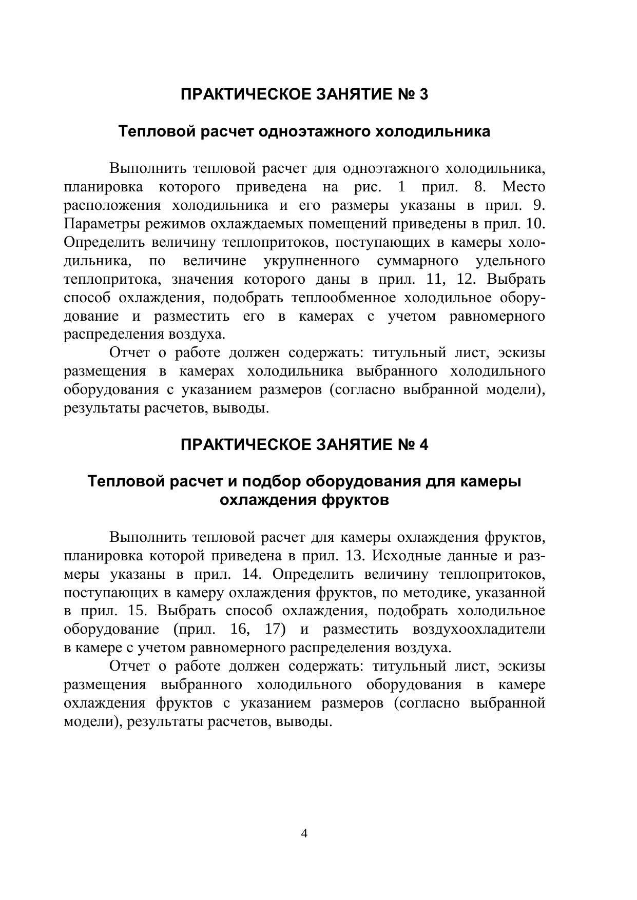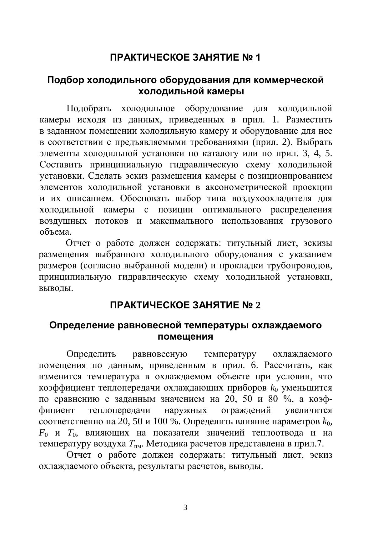 Указаны цель и порядок выполнения практических работ по дисциплине «Холодильное технологическое оборудование».