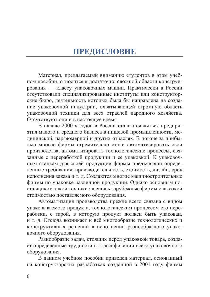 В учебном пособии рассмотрены существующие виды и конструкции современных упаковочных машин для различных видов продуктов (товаров), типов упаковки и отраслей промышленности. Материал, предлагаемый для изучения, основан на богатом практическом опыте авторов по разработке, проектированию и изготовлению упаковочного оборудования для формирования автоматических линий по упаковке различных товаров, созданных по заказам российских предприятий пищевой, парфюмерной, химической и других отраслей промышленности. Основанная авторами фирма НПО «Технологии упаковки» была первой в Российской Федерации компанией, начавшей работать в этой области и сумевшей составить реальную конкуренцию крупным компаниям как из Европы, так и из других стран. Для студентов бакалавриата, обучающихся по направлению подготовки «Технология полиграфического и упаковочного производства», профилю подготовки «Технология и дизайн упаковочного производства». Будет также полезно для организаций и конструкторских бюро, занимающихся разработкой и созданием технологического оборудования в различных отраслях промышленности.