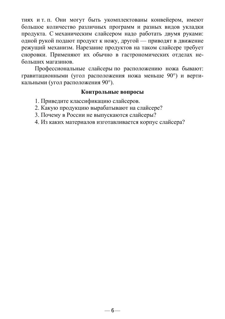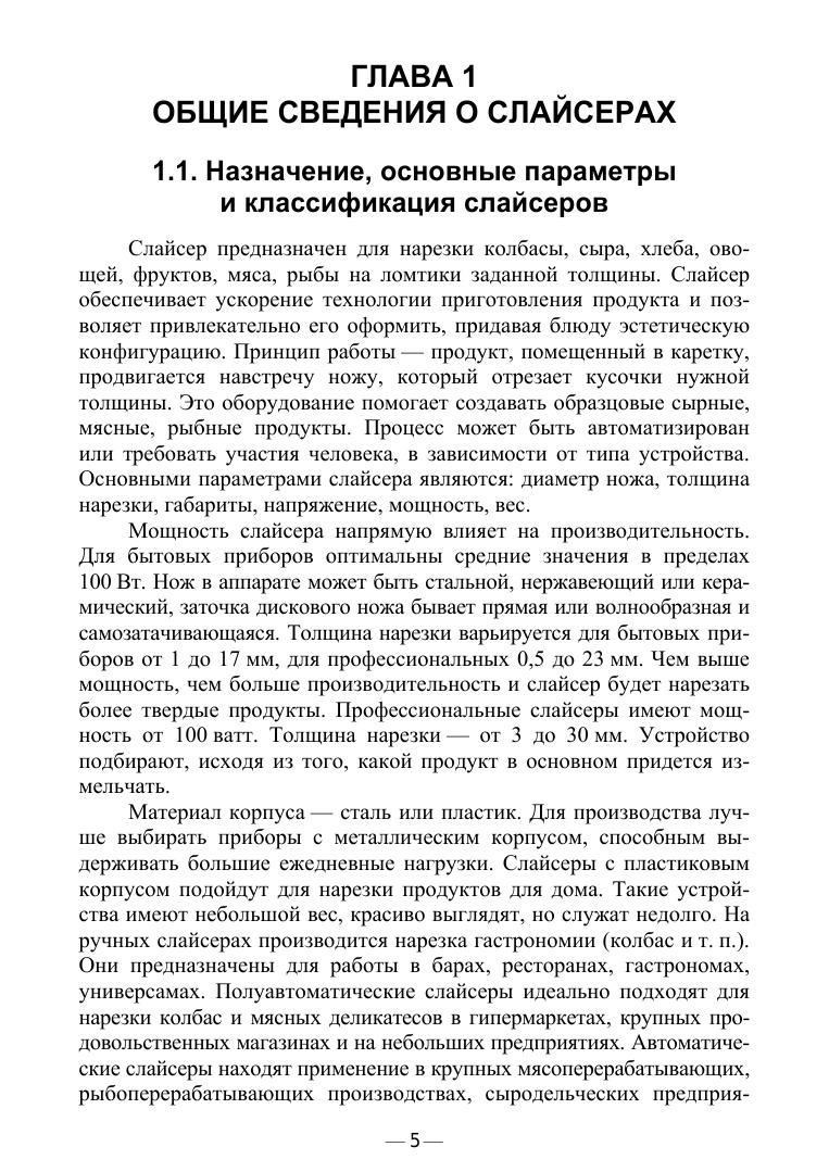 В учебном пособии приведен обзор и рассмотрены конструкции слайсеров. Даны основы проектирования и расчета. Учебное пособие соответствует современным требованиям Федерального государственного образовательного стандарта среднего профессионального образования и профессиональным квалификационным требованиям. Пособие предназначено для студентов средних профессиональных учебных заведений, обучающихся по специальностям: «Технология мяса и мясных продуктов», «Техническая эксплуатация оборудования в торговле и общественном питании».