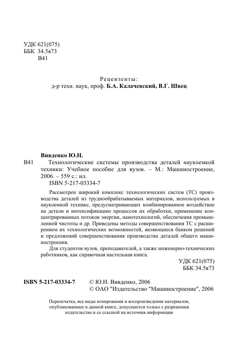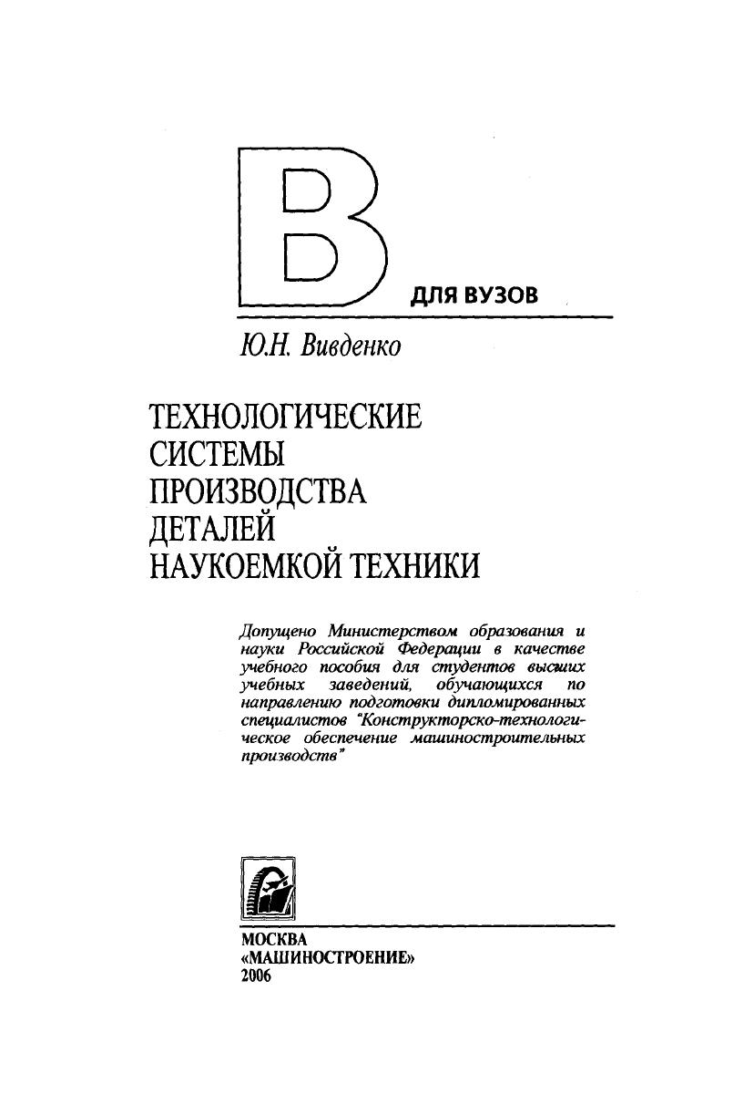 Гриф: Допущено Министерством образования и науки Российской Федерации в качестве учебного пособия для студентов высших учебных заведений, обучающихся по направлению подготовки дипломированных специалистов «Конструкторско-технологическое обеспечение машиностроительных производств»