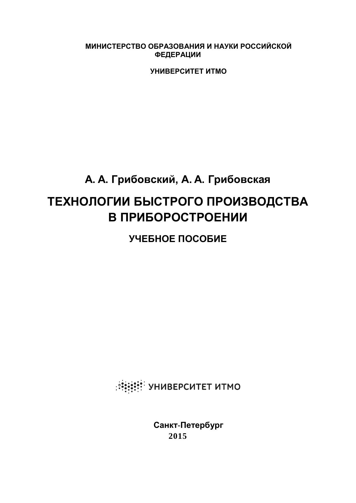 Технологии быстрого производства в приборостроении. Учебное пособие