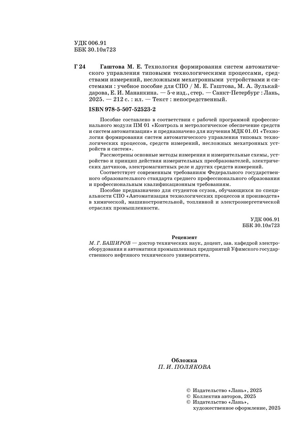 Технология формирования систем автоматического управления типовыми технологическими процессами, средствами измерений, несложными мехатронными устройствами и системами