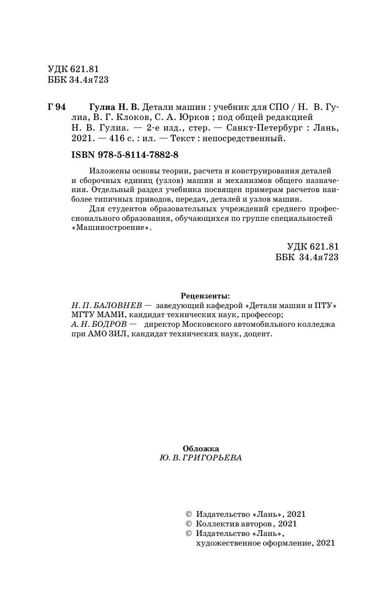 Изложены основы теории, расчета и конструирования деталей и сборочных единиц (узлов) машин и механизмов общего назначения. Отдельный раздел учебника посвящен примерам расчетов наиболее типичных приводов, передач, деталей и узлов машин.