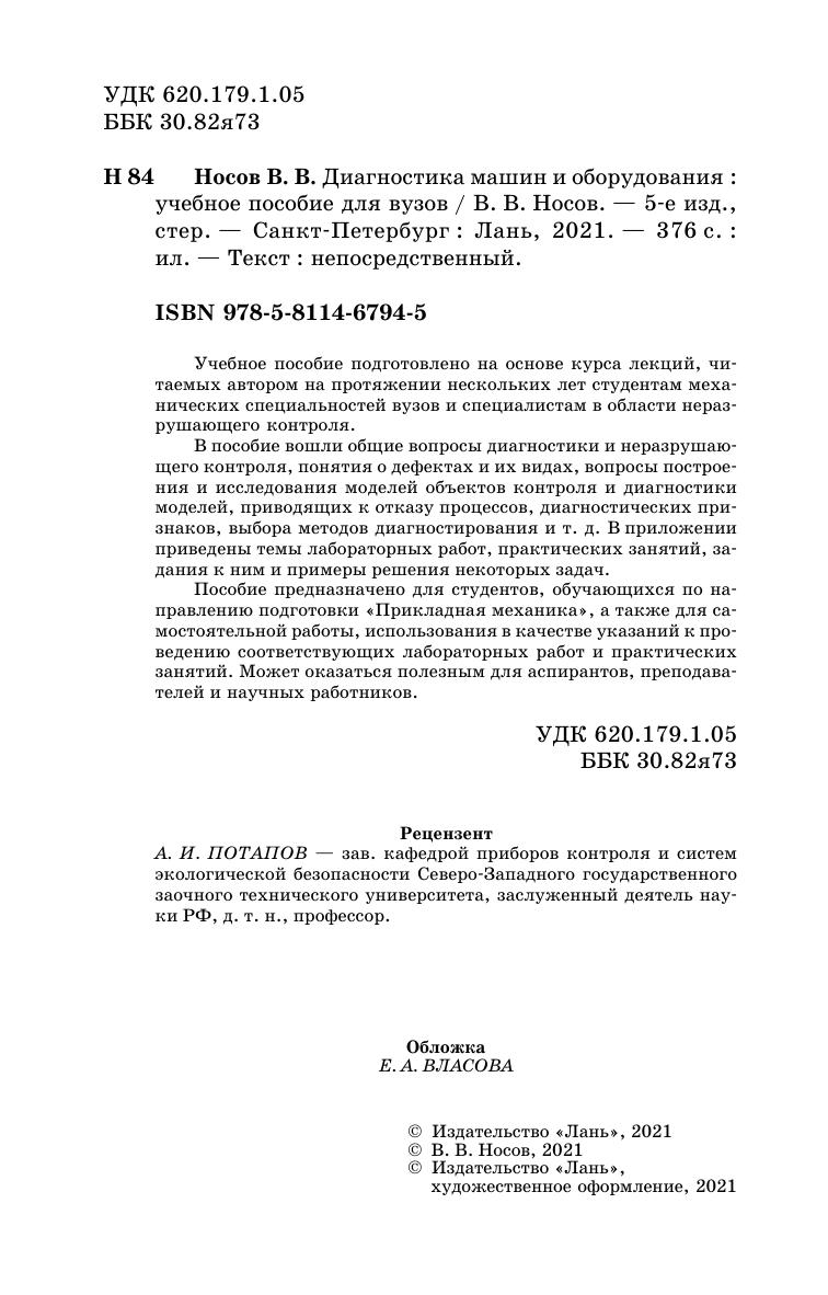 В пособие вошли общие вопросы диагностики и неразрушающего контроля, понятия о дефектах и их видах, вопросы построения и исследования моделей объектов контроля и диагностики моделей, приводящих к отказу процессов, диагностических признаков, выбора методов диагностирования и т. д. В приложении приведены темы лабораторных работ, практических занятий, задания к ним и примеры решения некоторых задач.