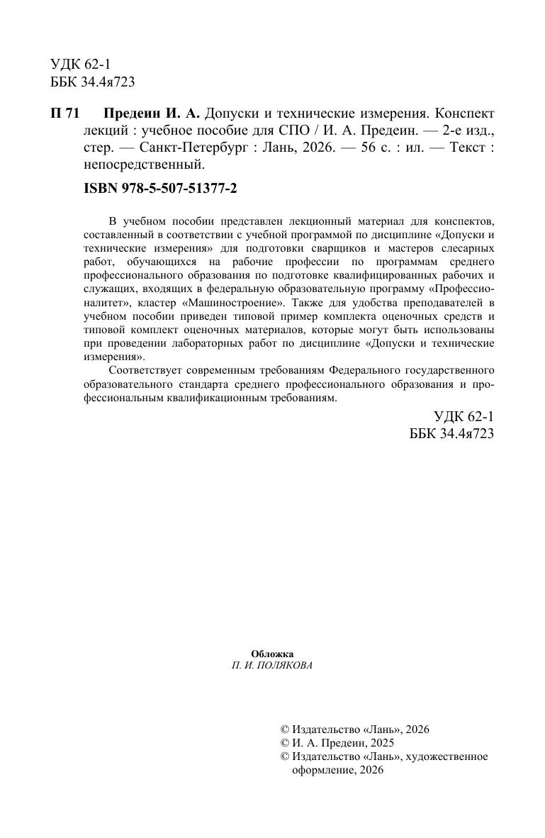 В учебном пособии представлен лекционный материал для конспектов, составленный в соответствии с учебной программой по дисциплине «Допуски и технические измерения» для подготовки сварщиков и мастеров слесарных работ, обучающихся на рабочие профессии по программам среднего профессионального образования по подготовке квалифицированных рабочих и служащих, входящих в федеральную образовательную программу «Профессионалитет», кластер «Машиностроение». Также для удобства преподавателей в учебном пособии приведен типовой пример комплекта оценочных средств и типовой комплект оценочных материалов, которые могут быть использованы при проведении лабораторных работ по дисциплине «Допуски и технические измерения». Соответствует современным требованиям Федерального государственного образовательного стандарта среднего профессионального образования и профессиональным квалификационным требованиям.