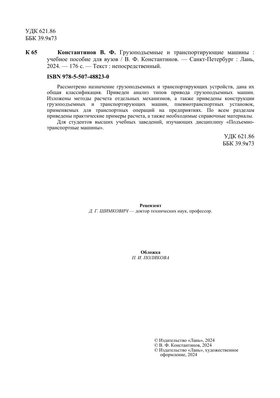 Рассмотрено назначение грузоподъемных и транспортирующих устройств, дана их общая классификация. Приведен анализ типов привода грузоподъемных машин. Изложены методы расчета отдельных механизмов, а также приведены конструкции грузоподъемных и транспортирующих машин, пневмотранспортных установок, применяемых для транспортных операций на предприятиях. По всем разделам приведены практические примеры расчета, а также необходимые справочные материалы. Для студентов высших учебных заведений, изучающих дисциплину «Подъемно-транспортные машины».