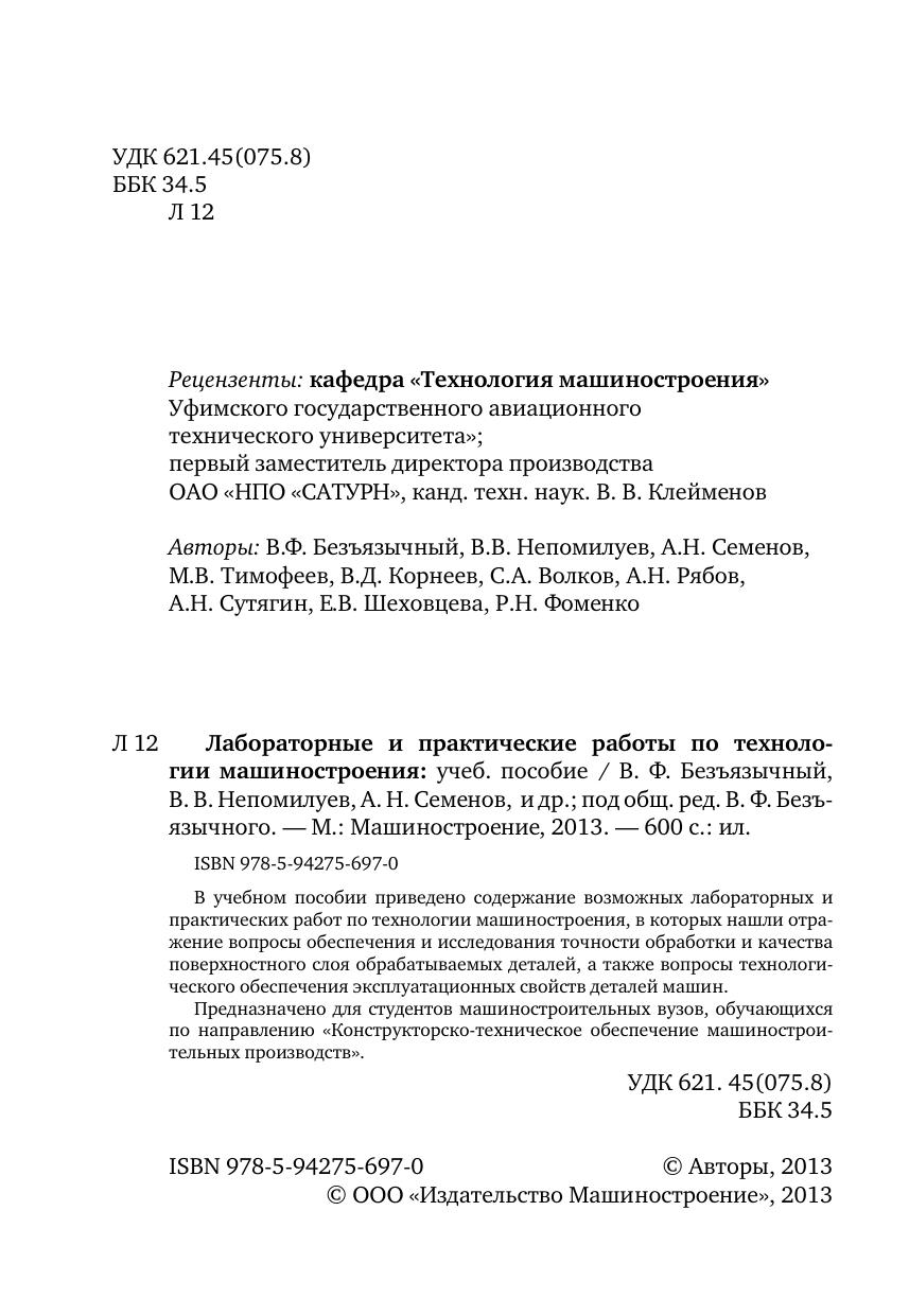 Авторы: Безъязычный В.Ф, Непомилуев В.В., Семенов А.Н., Тимофеев М.В.