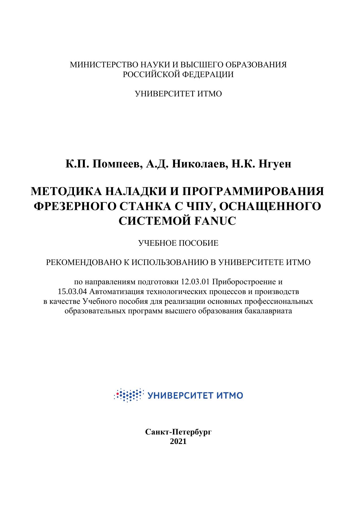 Пособие предназначено для бакалавров, обучающихся по направлениям подготовки 12.03.01 «Приборостроение» и 15.03.04 «Автоматизация технологических процессов и производств», выполняющих лабораторные работы по дисциплине «Оборудование с числовым программным управлением и разработка управляющих программ» и курсовое проектирование по дисциплине «Технологии приборостроения».