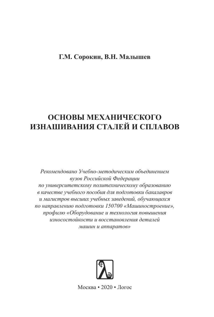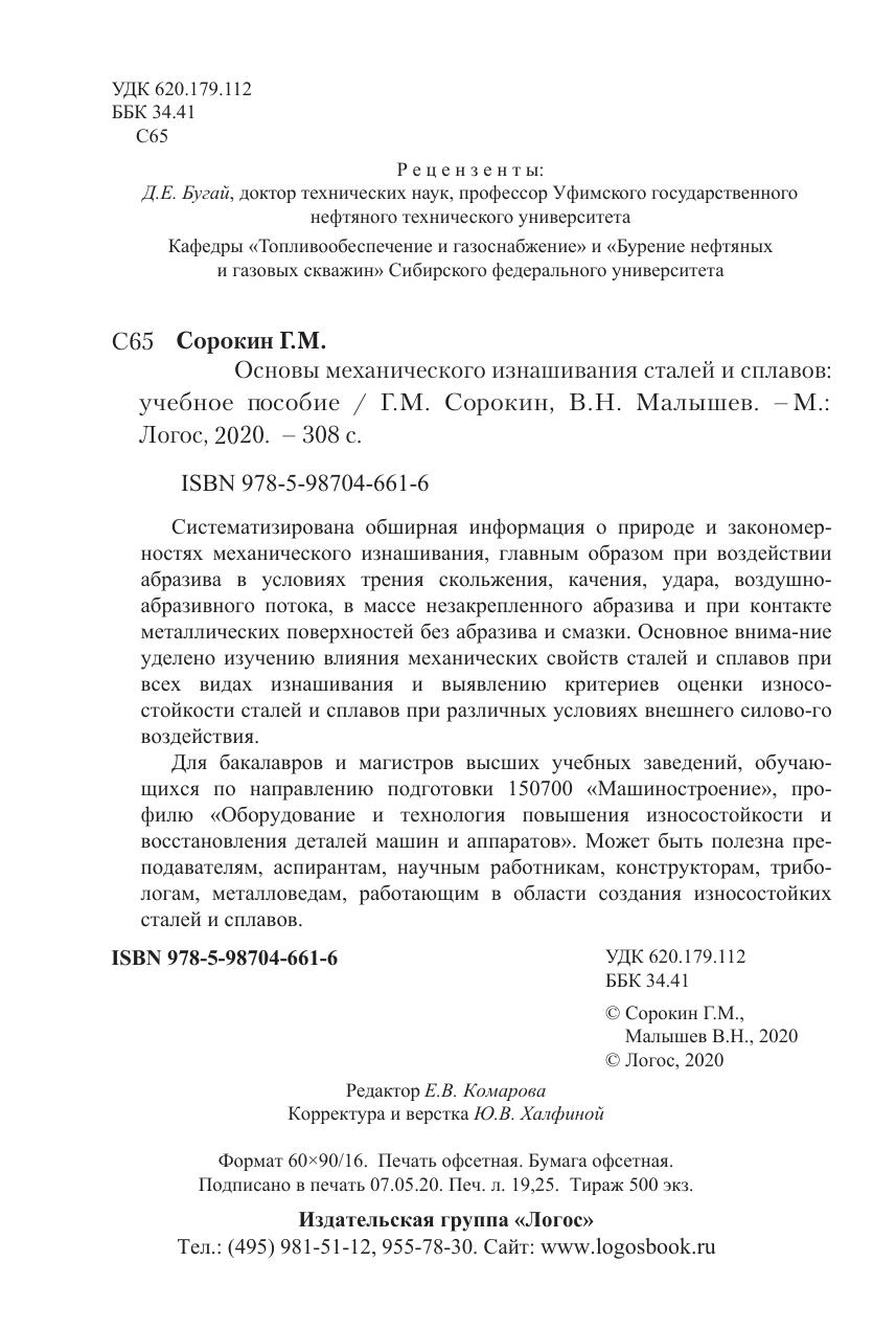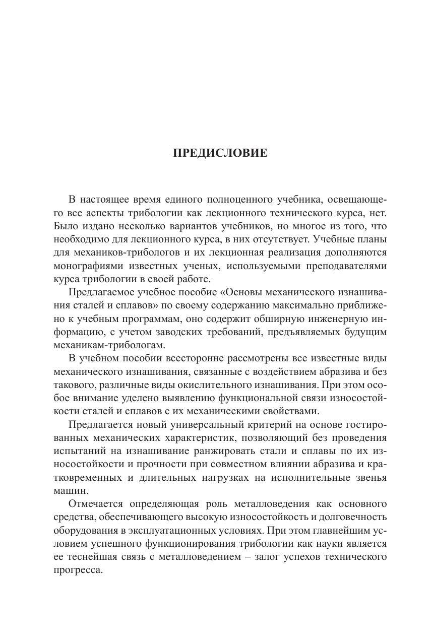 Систематизирована обширная информация о природе и закономерностях механического изнашивания, главным образом при воздействии абразива в условиях трения скольжения, качения, удара, воздушно-абразивного потока, в массе незакрепленного абразива и при контакте металлических поверхностей без абразива и смазки. Основное внимание уделено изучению влияния механических свойств сталей и сплавов при всех видах изнашивания и выявлению критериев оценки износостойкости сталей и сплавов при различных условиях внешнего силового воздействия. Для бакалавров и магистров высших учебных заведений, обучающихся по направлению подготовки 150700 «Машиностроение», профилю «Оборудование и технология повышения износостойкости и восстановления деталей машин и аппаратов». Может быть полезна преподавателям, аспирантам, научным работникам, конструкторам, трибологам, металловедам, работающим в области создания износостойких сталей и сплавов.