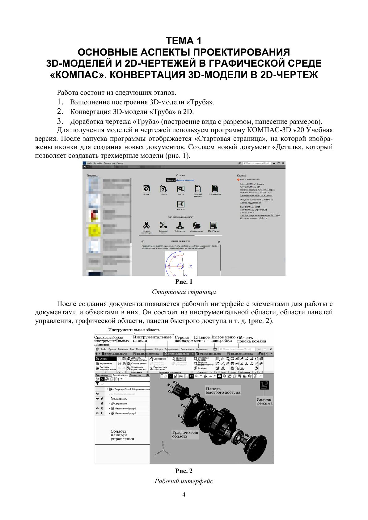В учебном пособии подробно рассмотрены основные аспекты проектирования 3D-моделей и 2D-чертежей в графической среде «КОМПАС». Рассматриваются такие вопросы, как: конвертация 3D-модели в 2D-чертеж, выполнение 3D-моделей типа «Тело вращения», создание сборки, оформление спецификации, а также проектирование электрической схемы. Соответствует требованиям федеральных государственных образовательных стандартов высшего образования последнего поколения. Для проведения лабораторных и практических занятий у студентов, обучающихся по направлениям подготовки «Автоматизация технологических процессов и производств» и «Конструкторско-технологическое обеспечение машиностроительных производств». Книга будет полезна программистам, которые занимаются пространственным моделированием объектов.