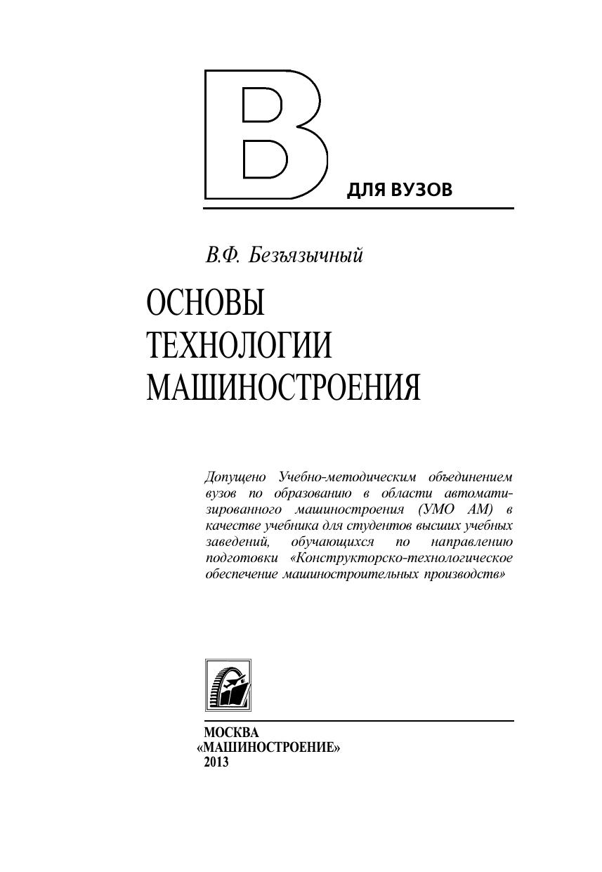 Гриф: Допущено Учебно-методическим объединением вузов по образованию в области автоматизированного машиностроения (УМО АМ) в качестве учебника для студентов высших учебных заведений, обучающихся по направлению подготовки «Конструкторско-технологическое обеспечение машиностроительных производств»