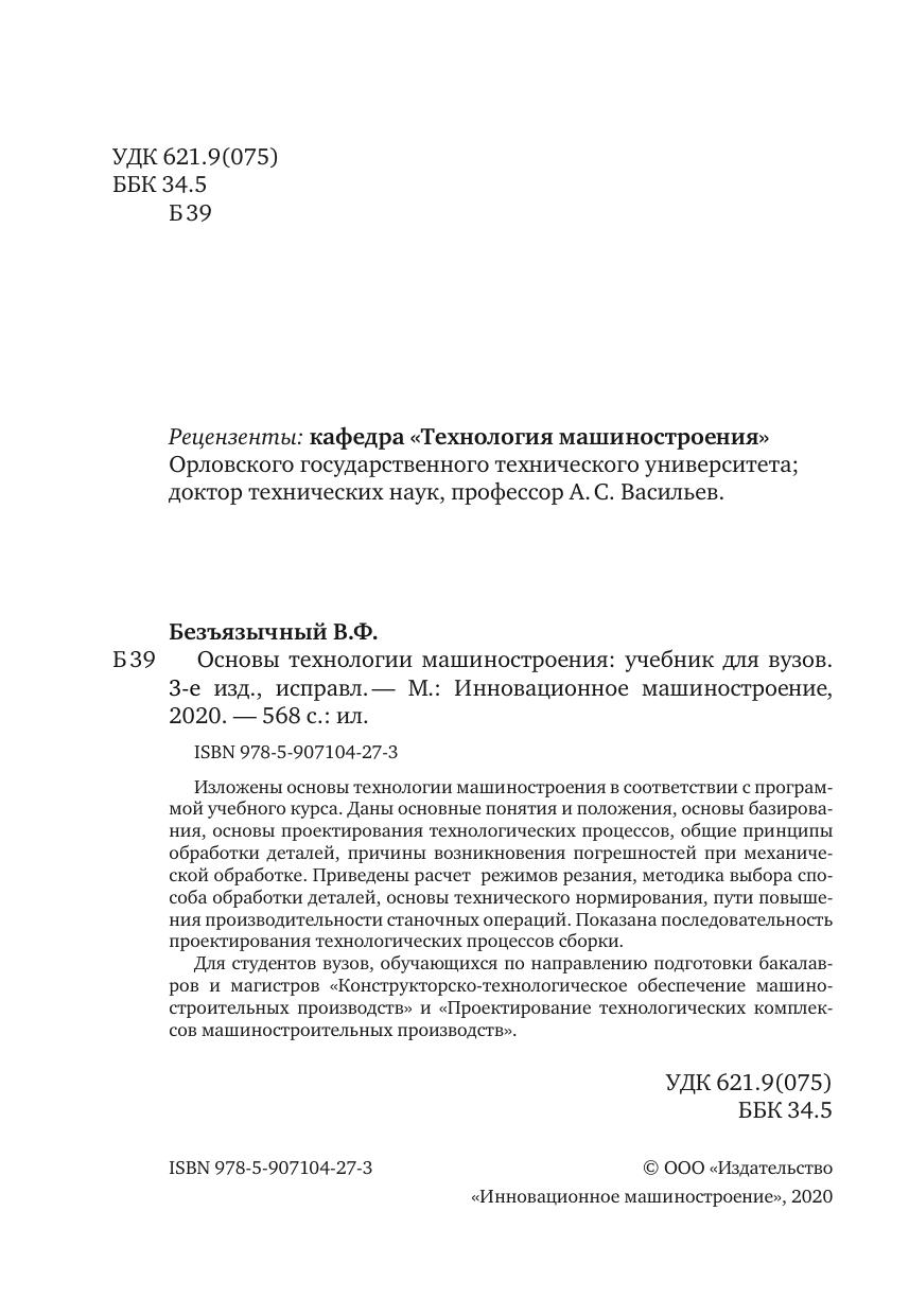Для студентов вузов, обучающихся по направлению подготовки бакалавров и магистров «Конструкторско-технологическое обеспечение машиностроительных производств» и «Проектирование технологических комплексов машиностроительных производств».
