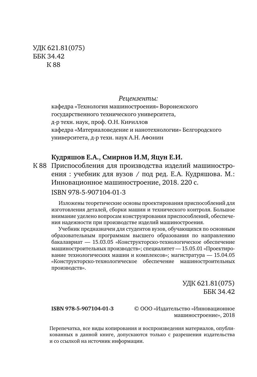Учебник предназначен для студентов вузов, обучающихся по основным образовательным программам высшего образования по направлению бакалавриат — 15.03.05 «Конструкторско-технологическое обеспечение машиностроительных производств»; специалитет — 15.05.01 «Проектирование технологических машин и комплексов»; магистратура — 15.04.05 «Конструкторско-технологическое обеспечение машиностроительных производств»