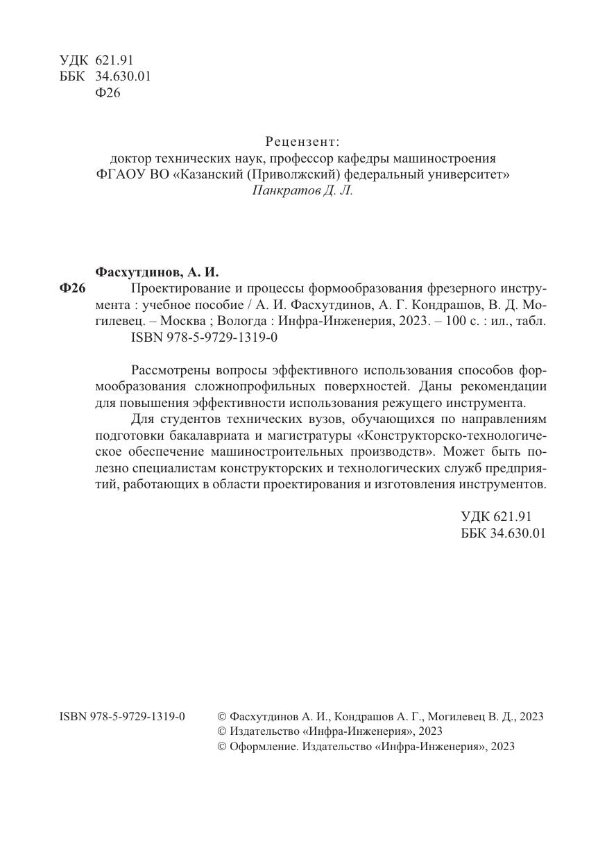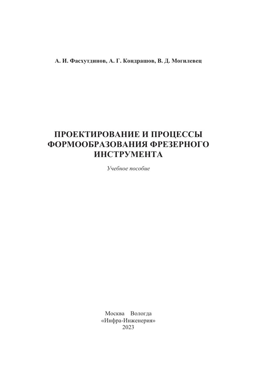 Проектирование и процессы формообразования фрезерного инструмента