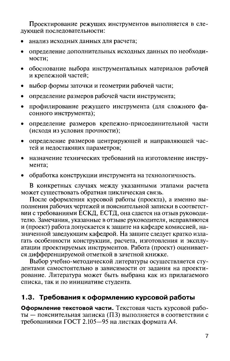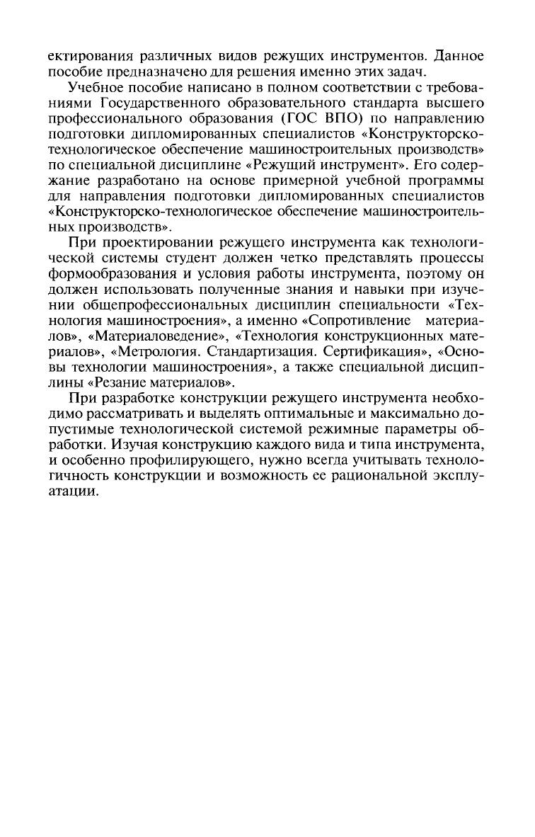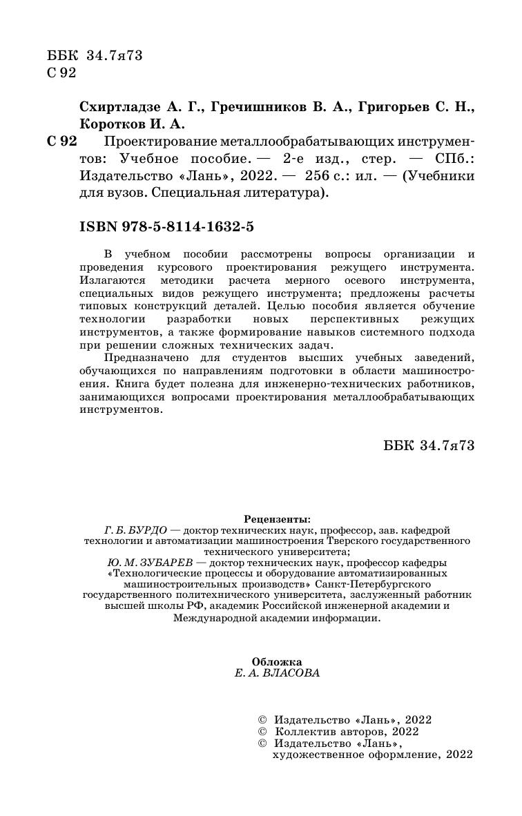 В учебном пособии рассмотрены вопросы организации и проведения курсового проектирования режущего инструмента. Излагаются методики расчета мерного осевого инструмента, специальных видов режущего инструмента, предложены расчеты типовых конструкций деталей. Целью пособия является обучение технологии разработки новых перспективных режущих инструментов, а также формирование навыков системного подхода при решении сложных технических задач. Предназначено для студентов высших учебных заведений, обучающихся по направлениям подготовки в области машиностро-ения. Книга будет полезна для инженерно-технических работников, занимающихся вопросами проектирования металлообрабатывающих инструментов.