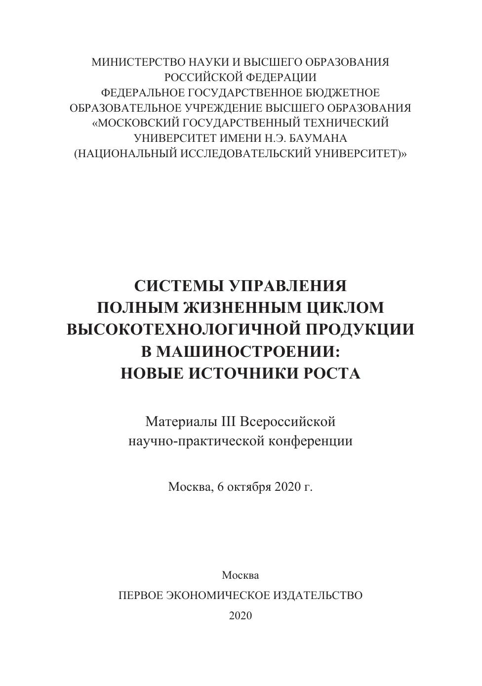 Системы управления полным жизненным циклом высокотехнологичной продукции в машиностроении: новые источники роста. Материалы III всероссийской научно-практической конференции