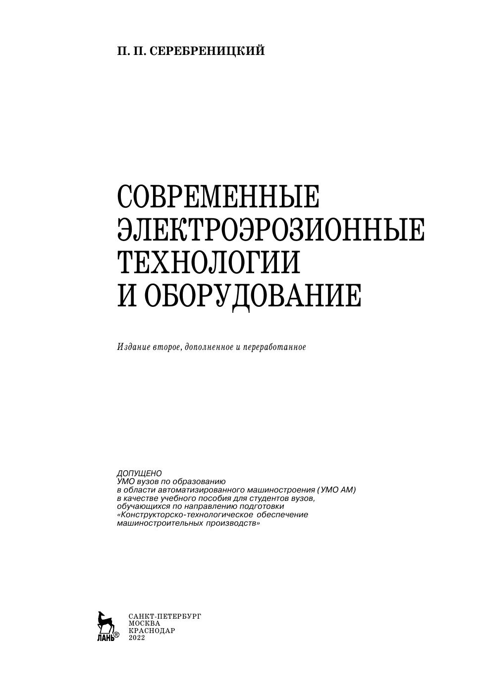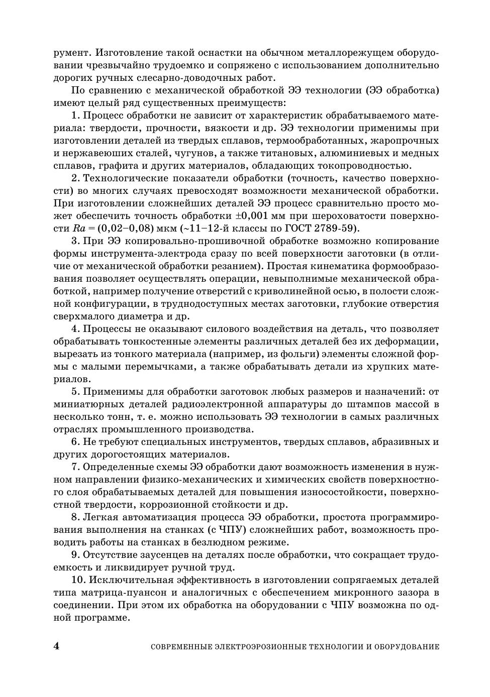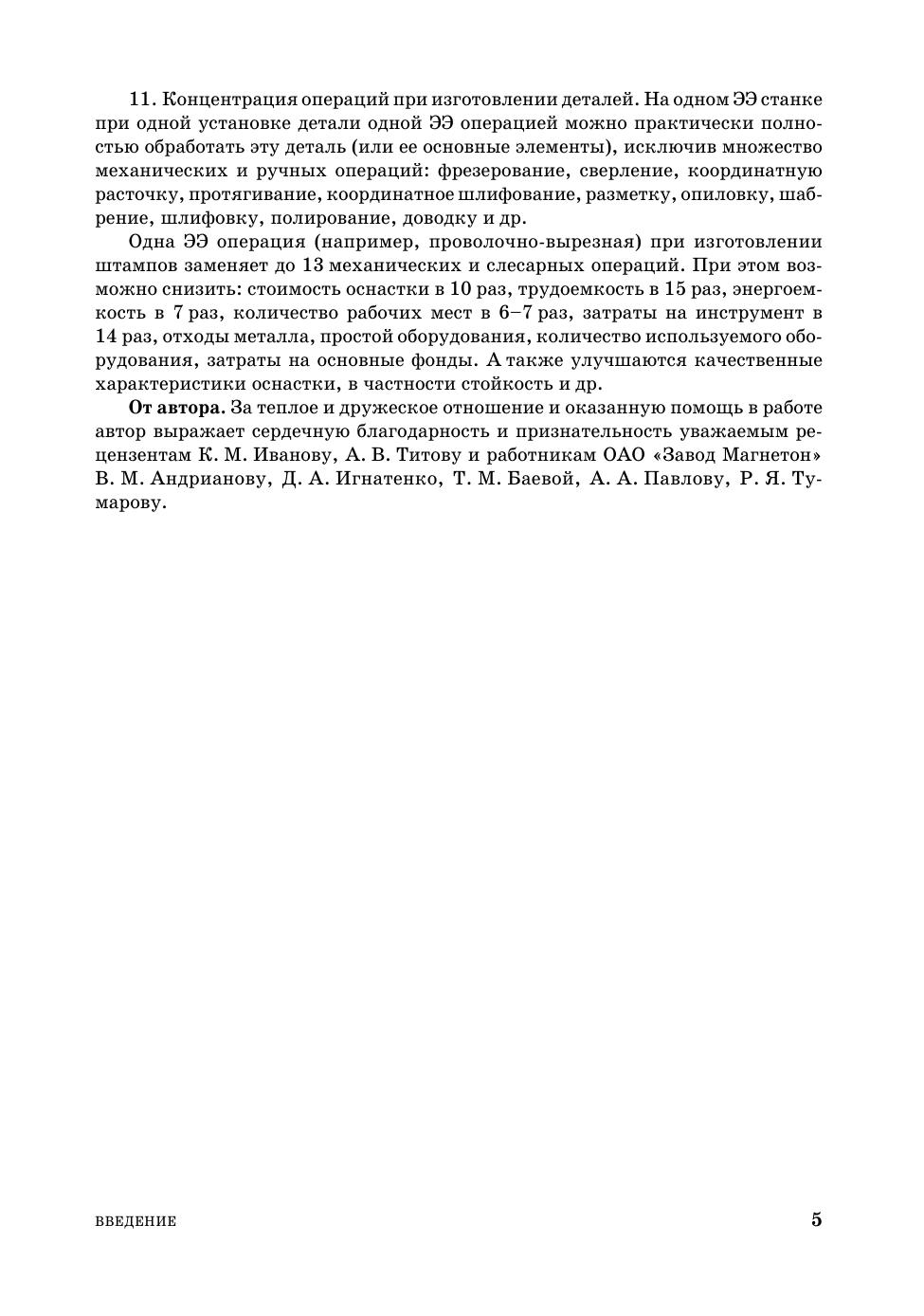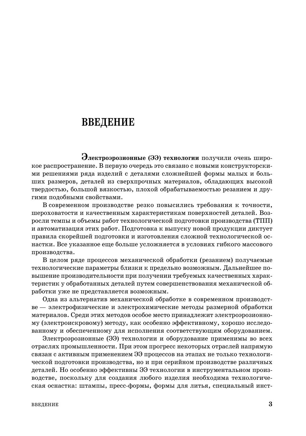 В книге кратко рассмотрен принцип электроэрозионного процесса, приведены примеры его применения на практике как технологии изготовления деталей, данные по современному электроэрозионному оборудованию и его технологическим возможностям. Кратко изложены методы программирования ЭЭ станков с ЧПУ и вопросы технологии высокоскоростной обработки в возможном применении ее для изготовления электродов. Предназначена для студентов средних и высших технических учебных заведений, технологов машиностроительных предприятий, книга будет также полезна и передовым рабочим.