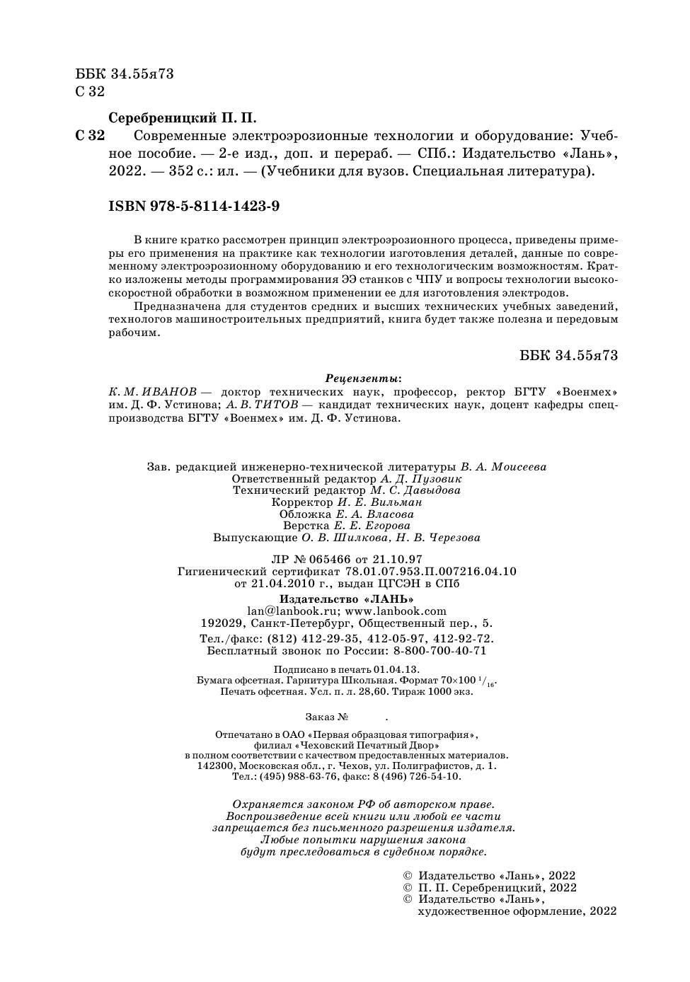 ISBN 978-5-8114-1423-9; 2022 г.