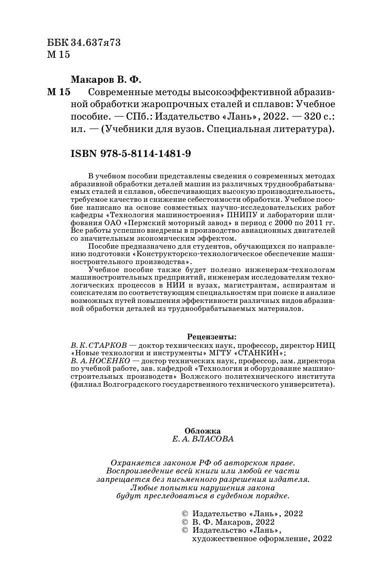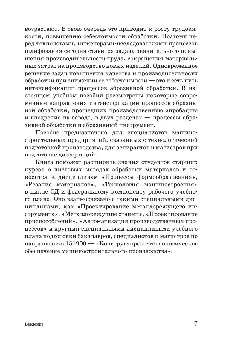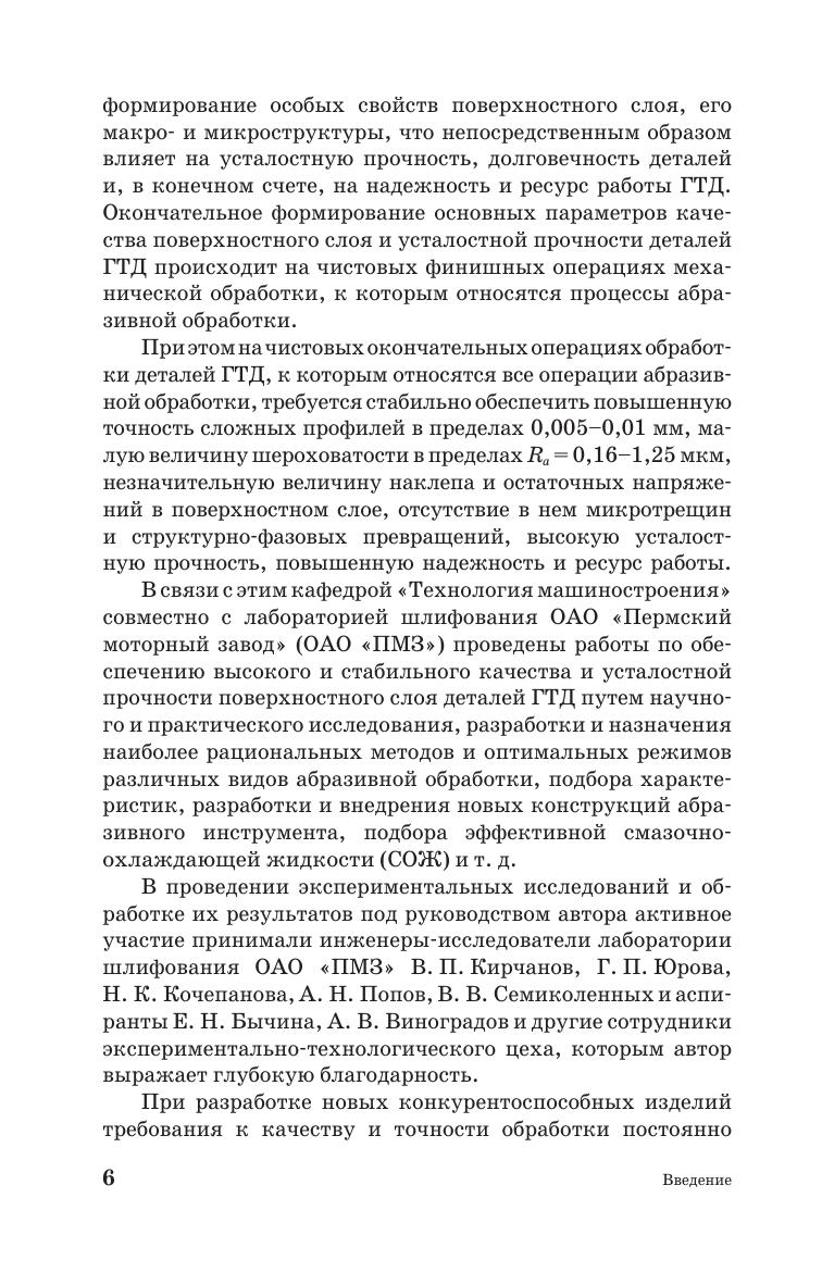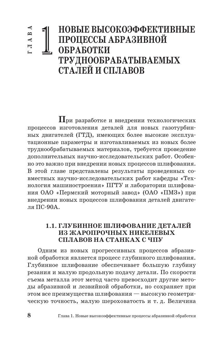 В учебном пособии представлены сведения о современных методах абразивной обработки деталей машин из различных труднообрабатываемых сталей и сплавов, обеспечивающих высокую производительность, требуемое качество и снижение себестоимости обработки. Учебное пособие написано на основе совместных научно-исследовательских работ кафедры «Технология машиностроения» ПНИПУ и лаборатории шлифования ОАО «Пермский моторный завод» в период с 2000 по 2011 годы. Все работы успешно внедрены в производство авиационных двигателей со значительным экономическим эффектом. Учебное пособие является дополнительным материалом, расширяющим знания студентов технических вузов о чистовых методах обработки материалов в курсах «Резание материалов» и «Технология машиностроения». Пособие предназначено для студентов старших курсов специальностей «Технология машиностроения», «Металлорежущие станки и инструменты» и направления подготовки бакалавров, магистров и специалистов «Конструкторско-технологическое обеспечение машиностроительного производства». Учебное пособие также будет полезно инженерам-технологам машиностроительных предприятий, инженерам исследователям технологических процессов в НИИ и вузах, магистрантам, аспирантам и соискателям по соответствующим специальностям при поиске и анализе возможных путей повышения эффективности различных видов абразивной обработки деталей из труднообрабатываемых материалов.