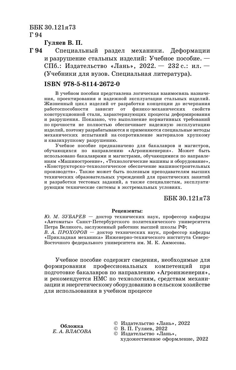 В учебном пособии представлена логическая взаимосвязь назначения, проектирования и надежной эксплуатации стальных изделий. Жизненный цикл изделий от разработки концепции до исчерпания работоспособности зависит от физико-механических свойств конструкционной стали, характеризующих процессы деформирования и разрушения. Показано, что выполнение нормативных требований по прочности не полностью обеспечивает надежную эксплуатацию изделий, поэтому разрабатываются и применяются специальные методы механических испытаний на сопротивление материалов хрупкому и квазихрупкому разрушению. В учебном пособии содержатся сведения по характеристикам хрупкого и квазихрупкого разрушения распространенных конструкционных сталей. Показана логическая взаимосвязь новых экспериментальных методов исследования поведения материалов под нагрузкой с повышением надежности машин и конструкций, эксплуатируемых в экстремальных условиях. Подчеркивается актуальность применения методов неразрушающего контроля для прогнозирования и диагностирования предельных состояний стальных изделий, эксплуатируемых в экстремальных условиях. В пособии приведены вопросы для самостоятельного контроля закрепления знаний по изученным темам, даны рекомендации по практическим занятиям для индивидуальной работы студентов. Учебное пособие предназначено для бакалавров и магистров, обучающихся по направлению «Агроинженерия». Может быть использовано бакалаврами и магистрами, обучающимися по направлениям «Машиностроение», «Технологические машины и оборудование», «Конструкторско-технологическое обеспечение машиностроительных производств». Также может быть полезным преподавателям высших технических образовательных учреждений для практических занятий и разработки тестовых заданий, а также специалистам, эксплуатирующим технические системы в экстремальных условиях.