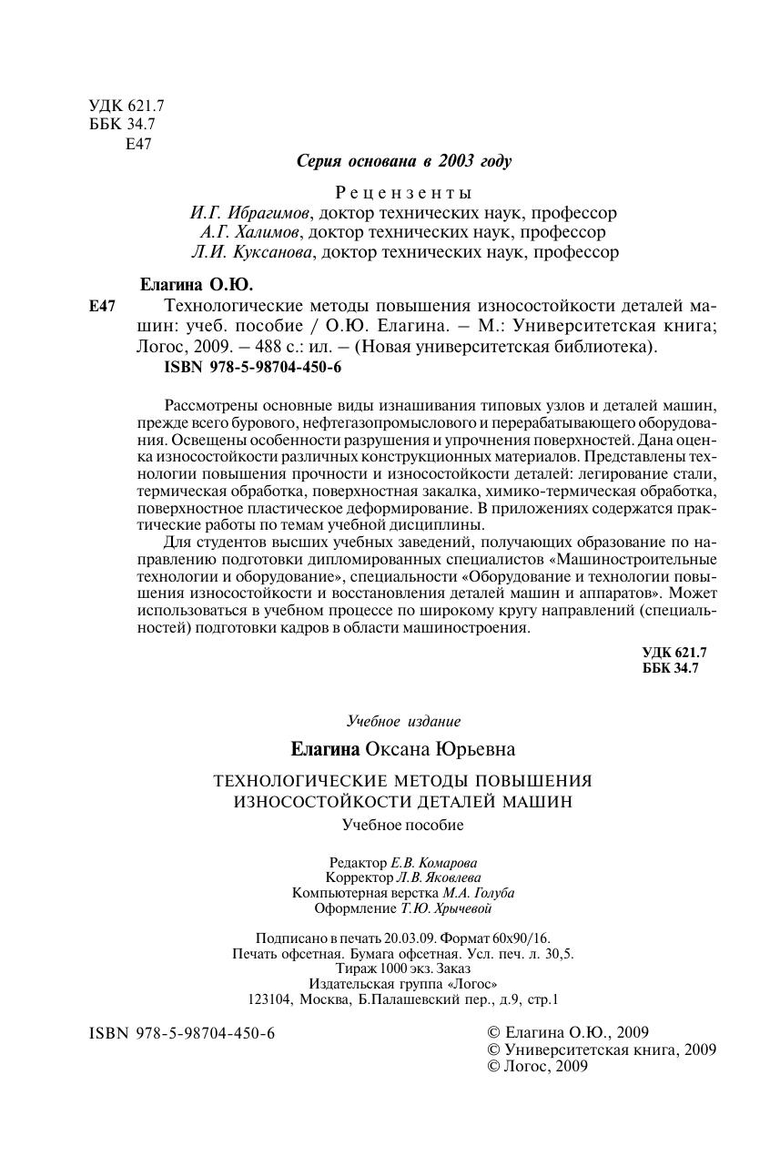 Рассмотрены основные виды изнашивания типовых узлов и деталей машин, прежде всего бурового, нефтегазопромыслового и перерабатывающего оборудования. Освещены особенности разрушения и упрочнения поверхностей. Дана оценка износостойкости различных конструкционных материалов. Представлены технологии повышения прочности и износостойкости деталей: легирование стали, термическая обработка, поверхностная закалка, химико-термическая обработка, поверхностное пластическое деформирование. В приложениях содержатся практические работы по темам учебной дисциплины. Для студентов высших учебных заведений, получающих образование по направлению подготовки дипломированных специалистов «Машиностроительные технологии и оборудование», специальности «Оборудование и технологии повышения износостойкости и восстановления деталей машин и аппаратов». Может использоваться в учебном процессе по широкому кругу направлений (специальностей) подготовки кадров в области машиностроения.