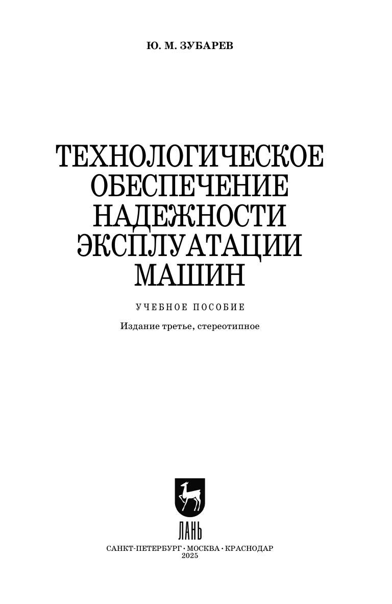Технологическое обеспечение надежности эксплуатации машин