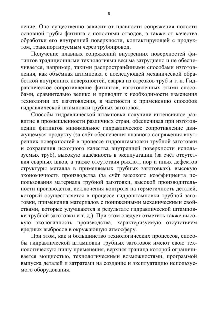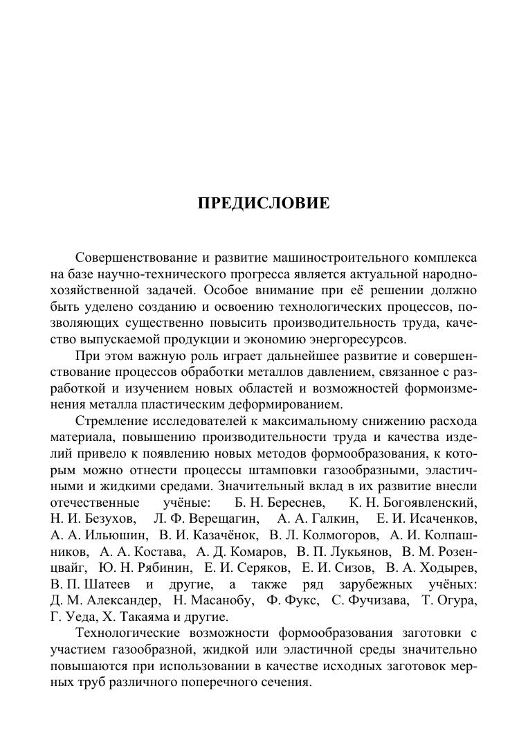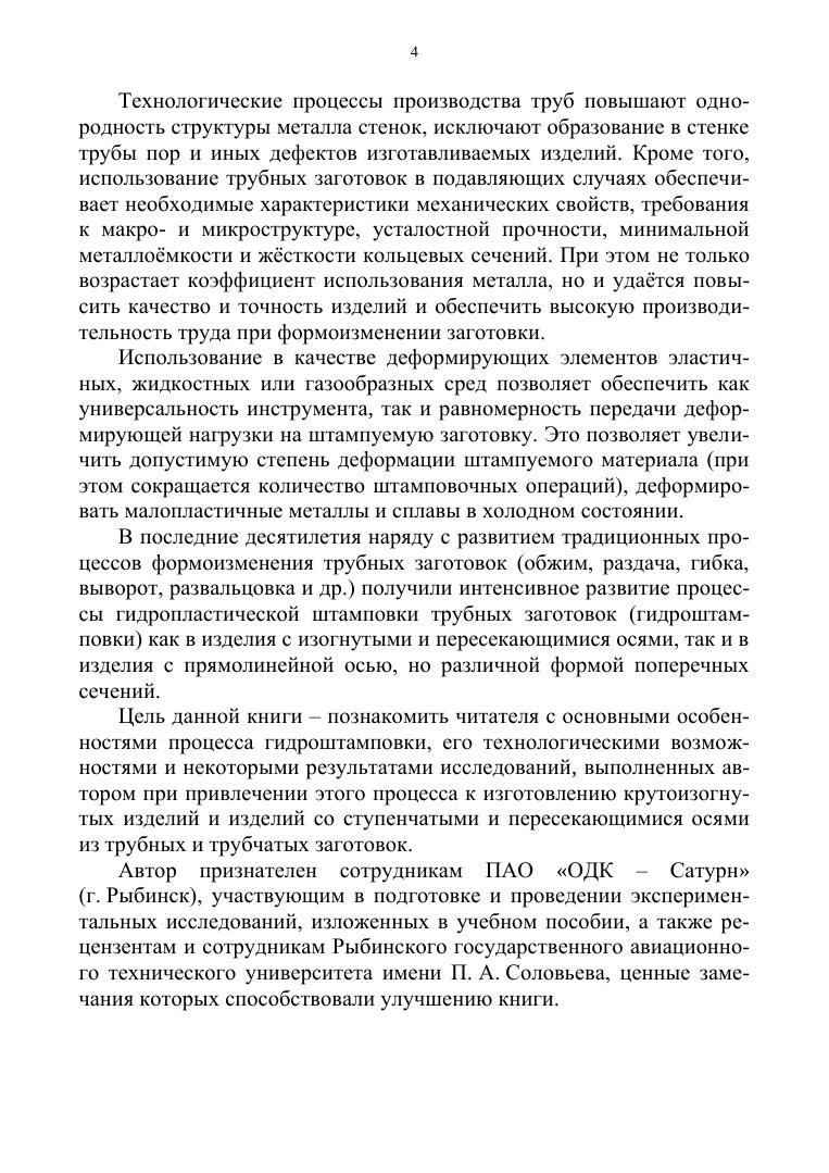 В учебном пособии изложены основы теории и технологии процессов деформирования трубных, трубчатых и листовых заготовок в изделия с крутоизогнутыми и ступенчатыми осями, имеющими близкий к нолю радиус гиба, а также изделий с пересекающимися осями — тройников. Выполнен анализ факторов, ограничивающих технологические возможности процессов изгиба как труб, так и листовых заготовок на сверхмалый радиус традиционными и оригинальными способами. Рассмотрены технологические особенности реализации разработанных процессов гидроштамповки. Приведены результаты их экспериментальных исследований, схемы разработанного оборудования, а также некоторые перспективные направления развития как процессов гидроштамповки труб, так и способов получения ультрамелкокристаллической структуры материала прутковых и трубных полуфабрикатов. Может быть полезно специалистам организаций, занимающихся вопросами пластического деформирования трубных и листовых заготовок, научно-техническим работникам учебных организаций, занимающихся вопросами теории и технологии обработки металлов давлением, студентам и аспирантам, обучающимся по направлению «Машиностроение».