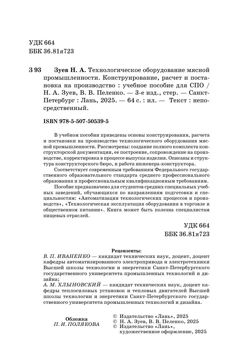 В учебном пособии приведены основы конструирования, расчета и постановки на производство технологического оборудования мясной промышленности. Рассмотрены создание полного комплекта конструкторской документации, ее построение, сопровождение на производстве, корректировка в процессе выпуска изделия. Описаны и структура конструкторского бюро, и работа инженера-конструктора. Соответствует современным требованиям Федерального государственного образовательного стандарта среднего профессионального образования и профессиональным квалификационным требованиям. Пособие предназначено для студентов средних специальных учебных заведений, обучающихся по направлениям подготовки и специальностям: «Автоматизация технологических процессов и производств», «Технологическая эксплуатация оборудования в торговле и общественном питании». Книга может быть полезна специалистам пищевых отраслей.