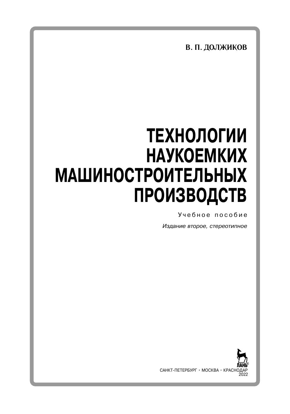 В пособии с позиции системного подхода представлены современные инновационные технологии наукоемких машиностроительных производств. Рассмотрены вопросы создания наукоемкого механосборочного машиностроительного производства, его структура и инфраструктура, логистика, способы управления производством, персоналом, знаниями, применения инновационных материалов и технологий, тенденции развития. Предназначено для студентов, обучающихся по направлению «Технология машиностроения» и профилю «Физика высоких технологий в машиностроении».