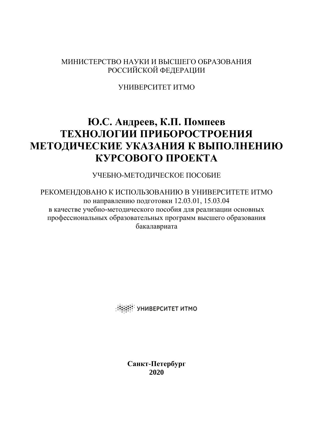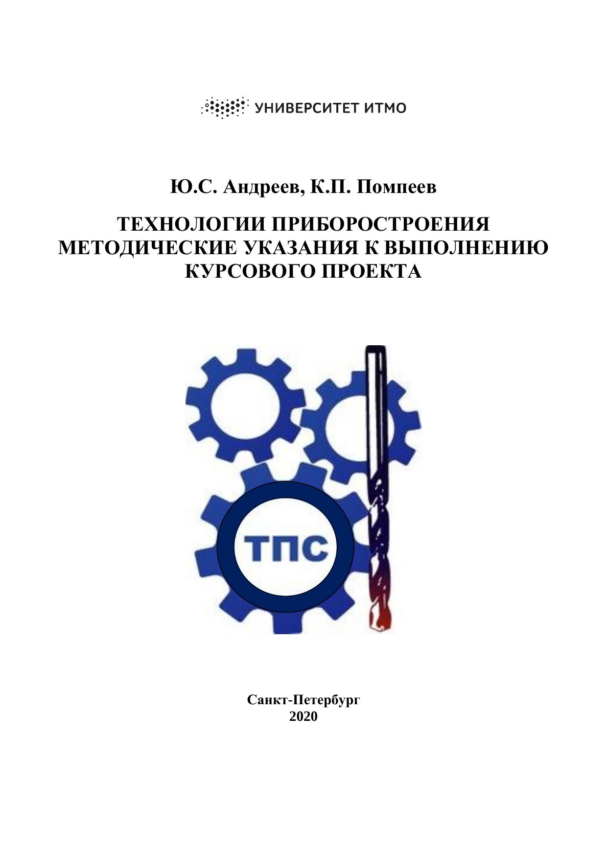 В методическом пособии содержится общая методика выполнения курсового проекта по дисциплине «Технология приборостроения» для бакалавров, обучающихся по направлениям подготовки 12.03.01 «Приборостроение» и 15.03.04 «Автоматизация технологических процессов и производств»