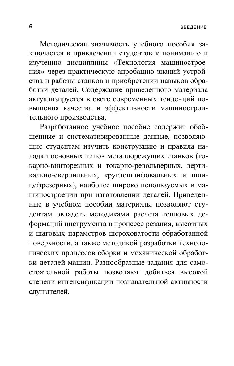В учебном пособии приведено содержание возможных лабораторных работ, в которых нашли отражение вопросы устройства, наладки и эксплуатации основных типов универсальных и специальных металлорежущих станков, автоматов и полуавтоматов, наиболее широко используемых в машиностроении при изготовлении различных деталей. Представленные в учебном пособии материалы позволяют овладеть методиками расчета тепловых деформаций инструмента в процессе резания и разработки технологических процессов сборки изделий и механической обработки деталей. Практические знания, полученные студентами, будут использоваться ими при выполнении инженерных работ разного уровня сложности. Соответствует современным требованиям Федерального государственного образовательного стандарта среднего профессионального образования и профессиональным квалификационным требованиям. Учебное пособие предназначено для студентов машиностроительных специальностей колледжей.