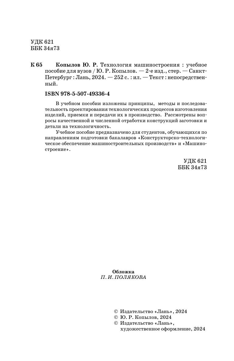 В учебном пособии изложены принципы, методы и последовательность проектирования технологических процессов изготовления изделий, приемки и передачи их в производство. Рассмотрены вопросы качественной и численной отработки конструкций заготовки и детали на технологичность. Учебное пособие предназначено для студентов, обучающихся по направлениям подготовки бакалавров соответствует «Конструкторско-технологическое обеспечение машиностроительных производств» и «Машиностроение».